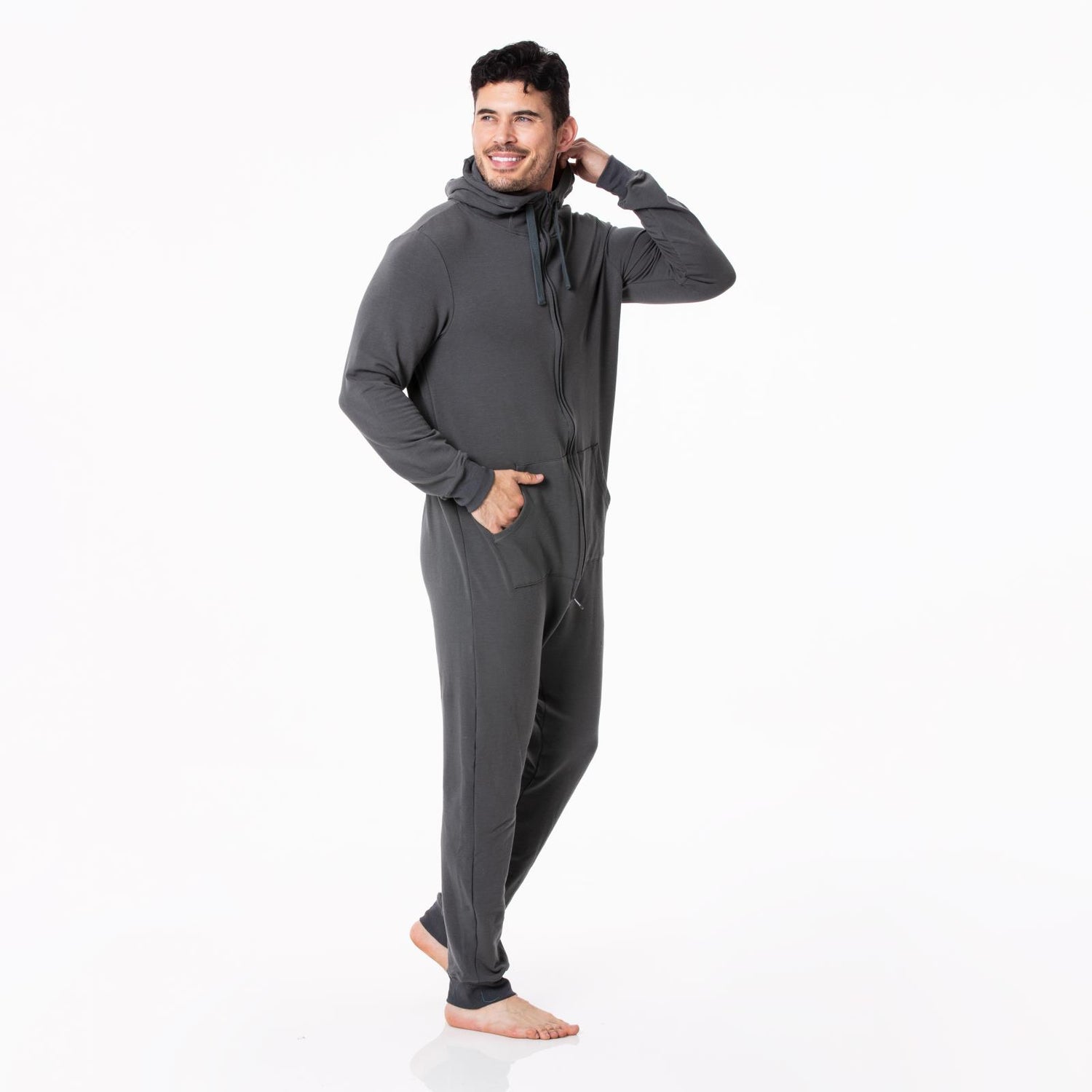 Adult Fleece Jumpsuit with Hood in Pewter