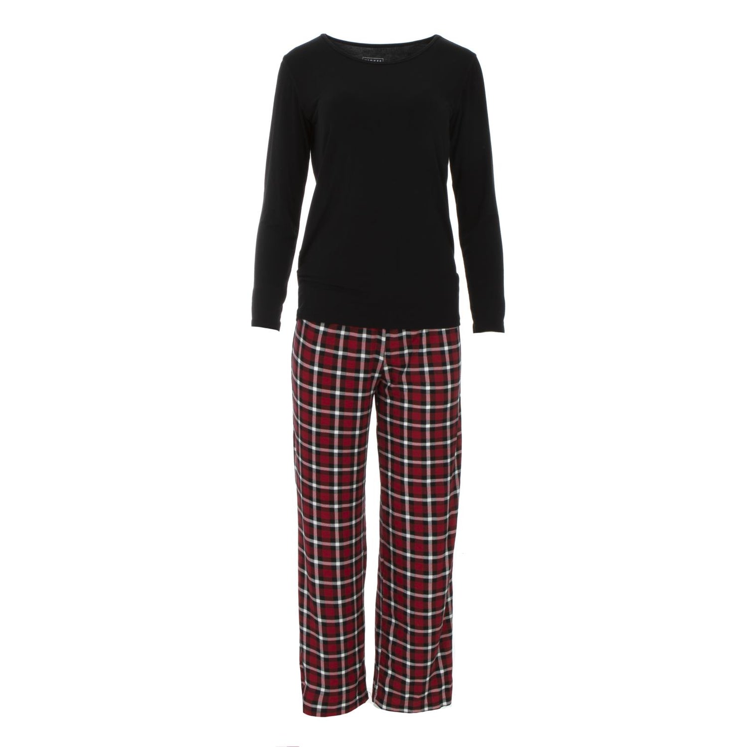 Long Sleeve Relaxed Tee & Pant Set in Crimson Holiday Plaid