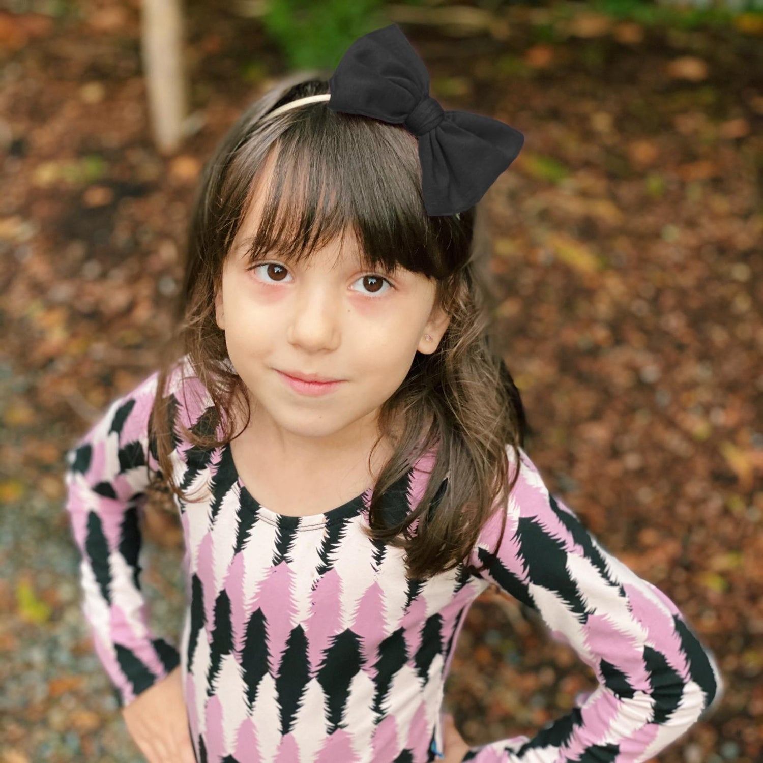 Our Luxe Skinny Bow with Headband is similar to our Luxe Big Bow with Headband, but smaller for a daintier touch. The Luxe version of our super-soft KicKee fabric is blended with Organic Cotton and Spandex. It offers a luxurious weight and stretch with all the same softness KicKee fabric is known for.