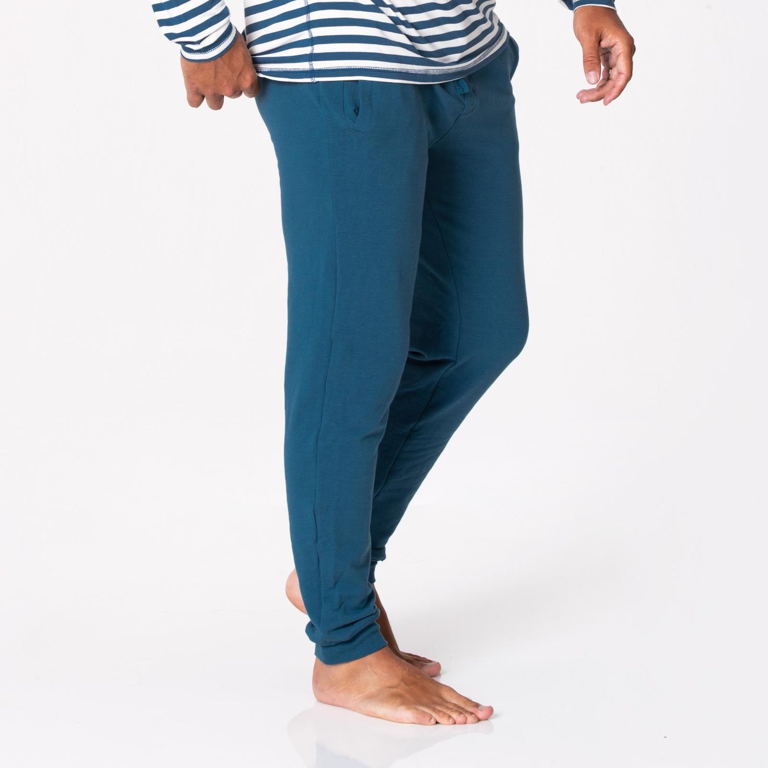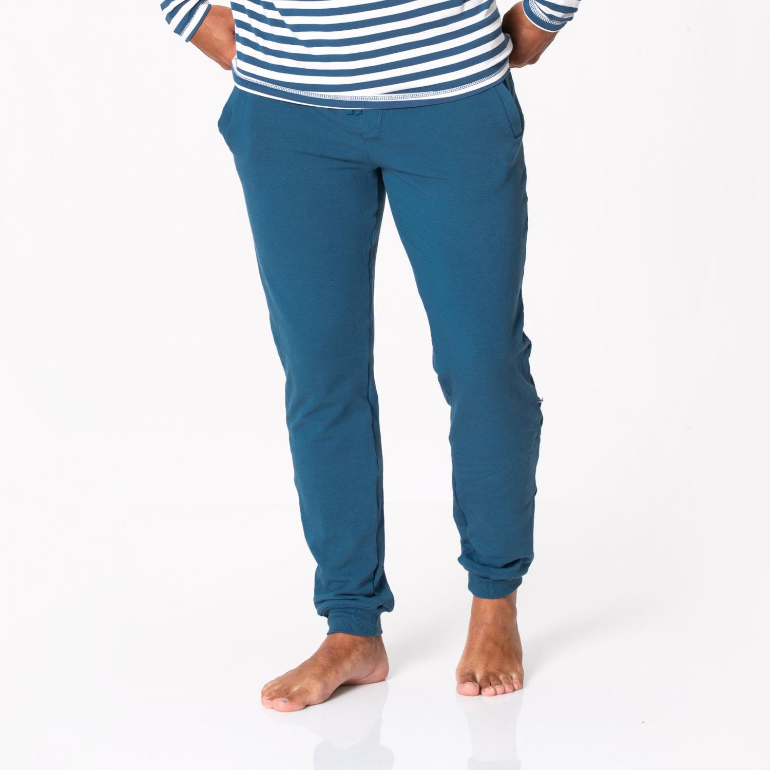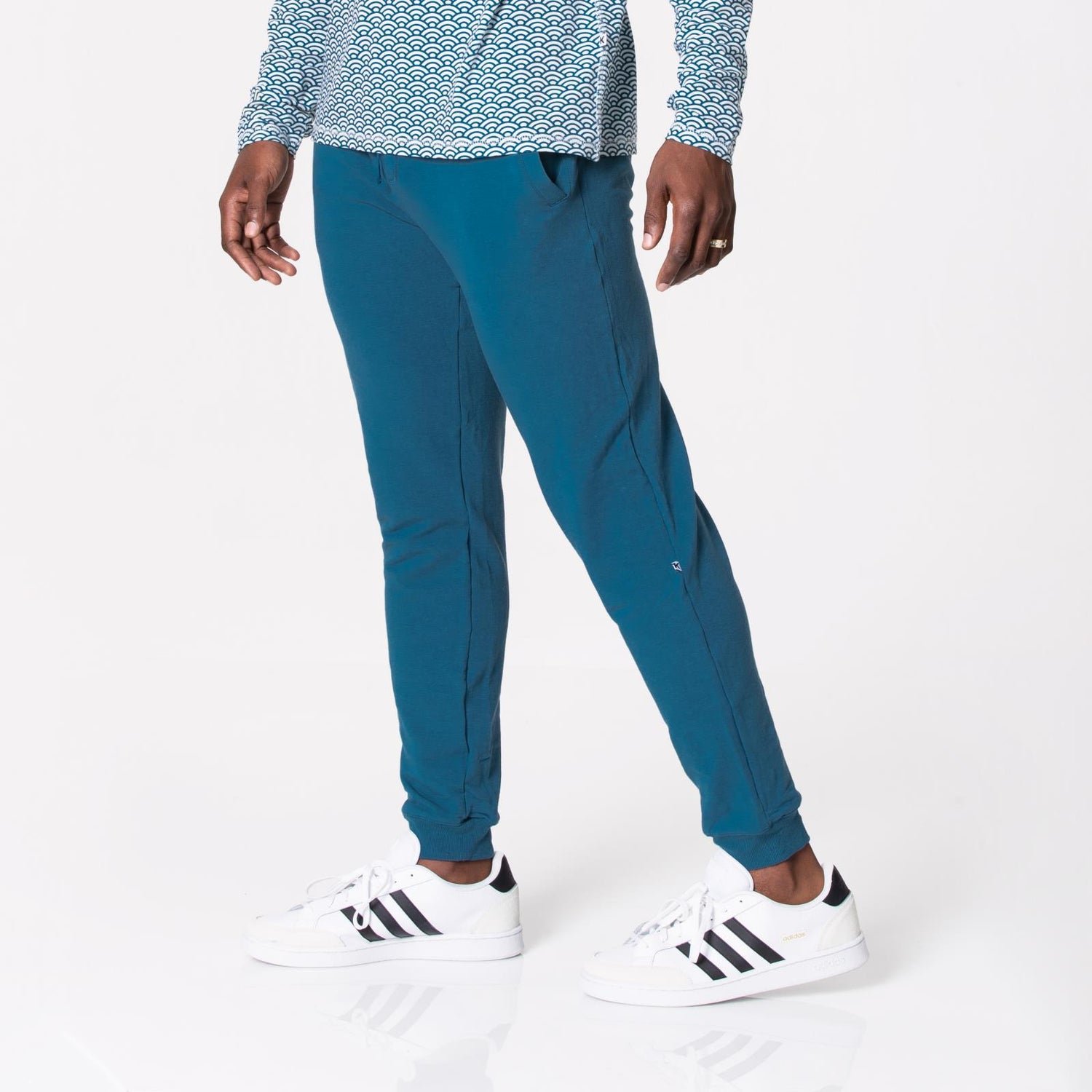 • Elastic waistband with inner drawcord, side pockets and tapered ankles