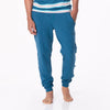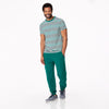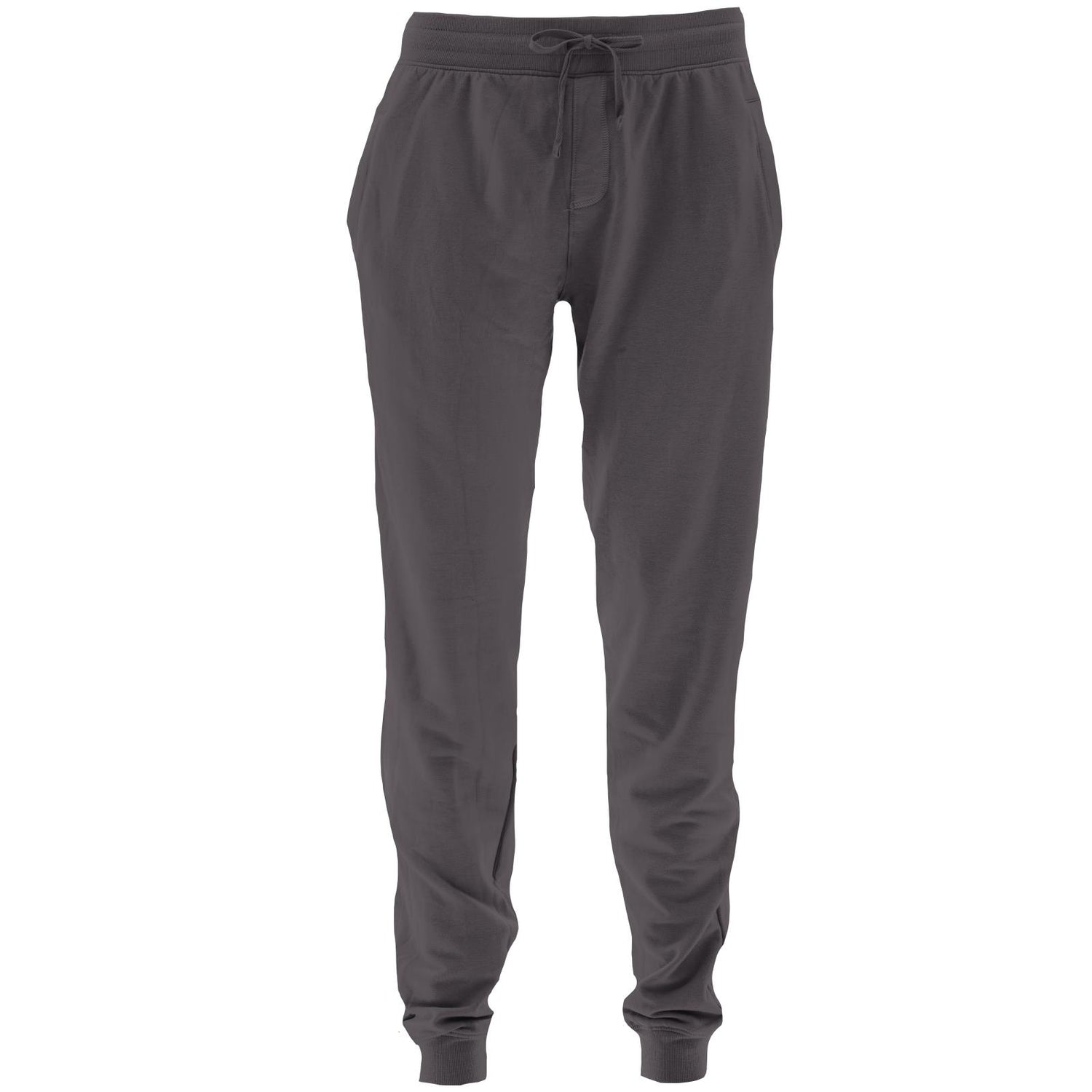 - Elastic waistband with inner drawcord, side pockets and tapered ankles