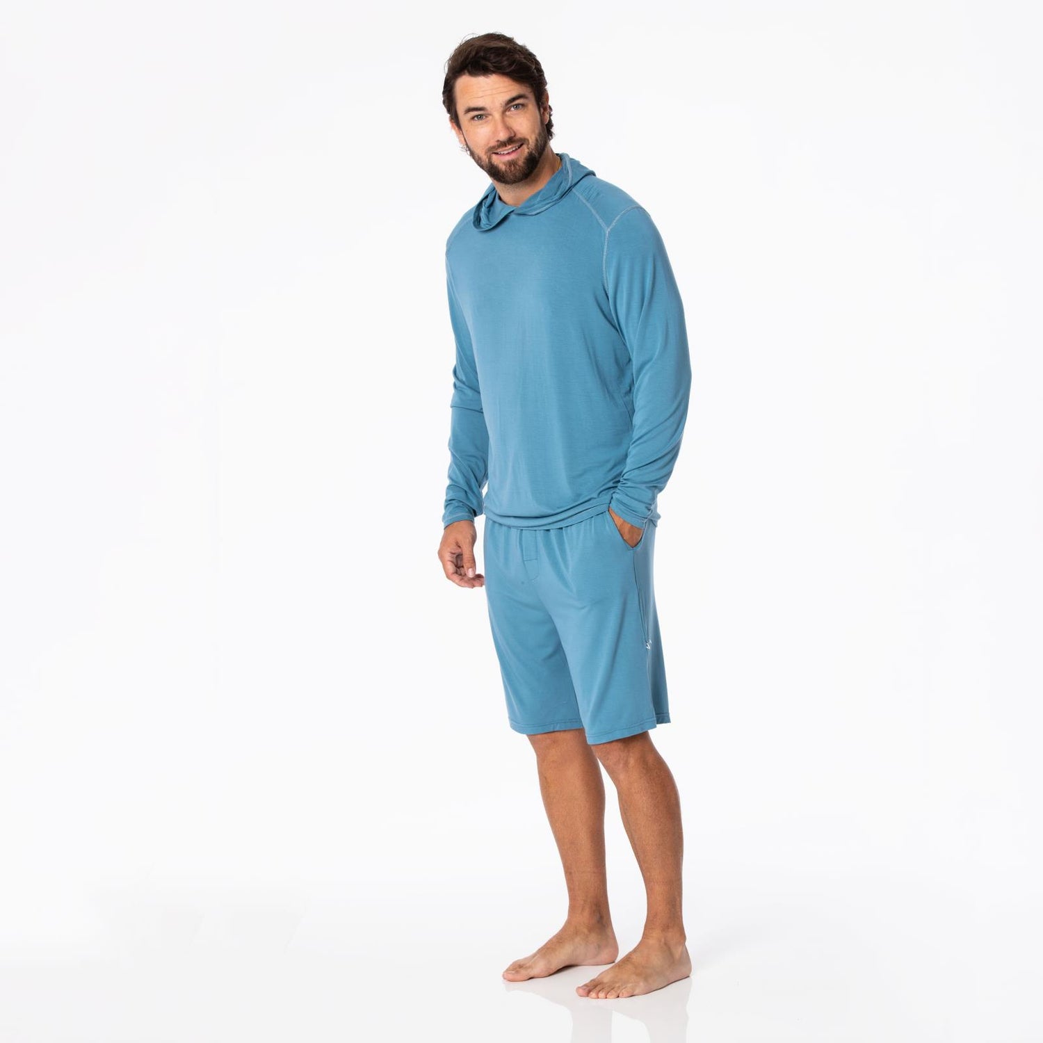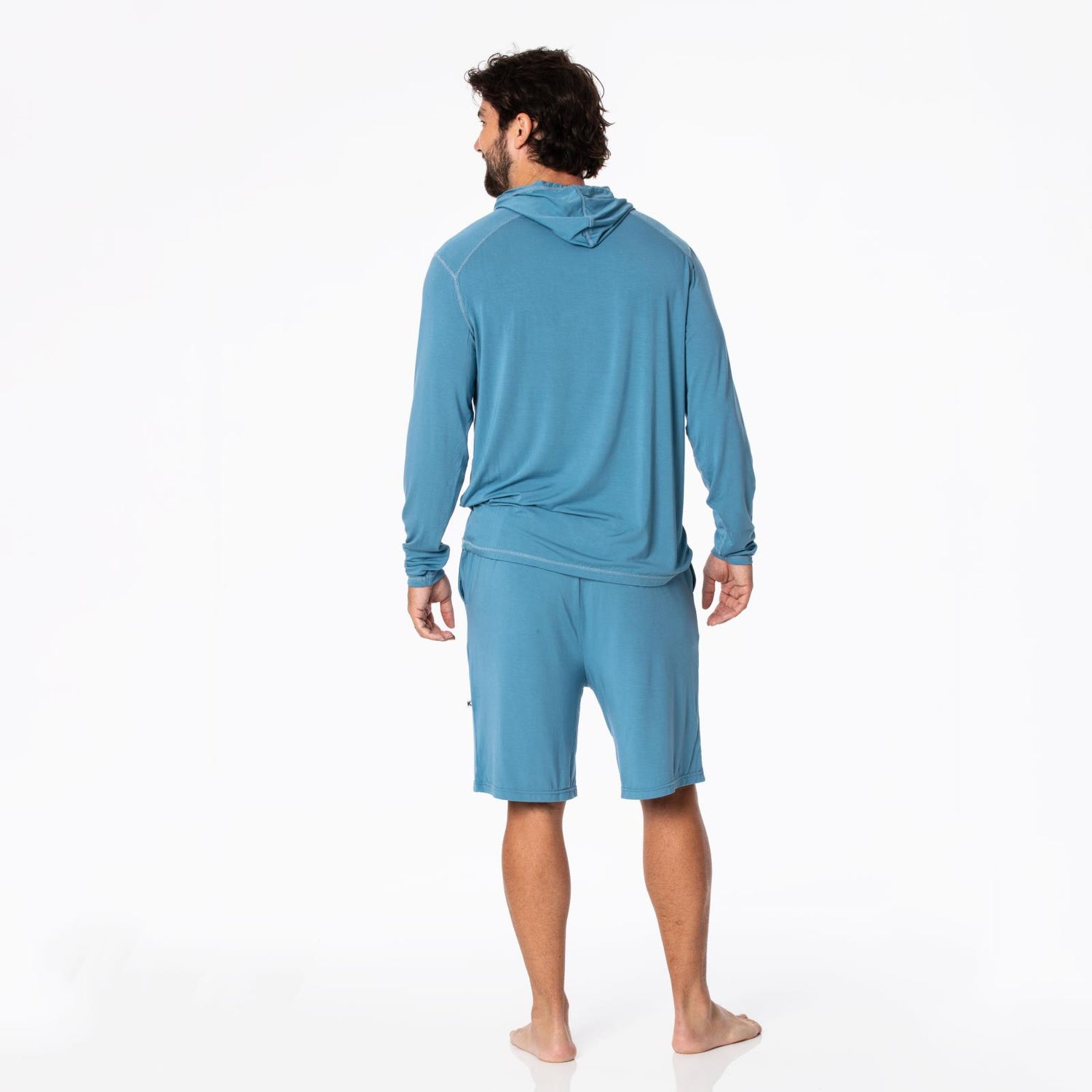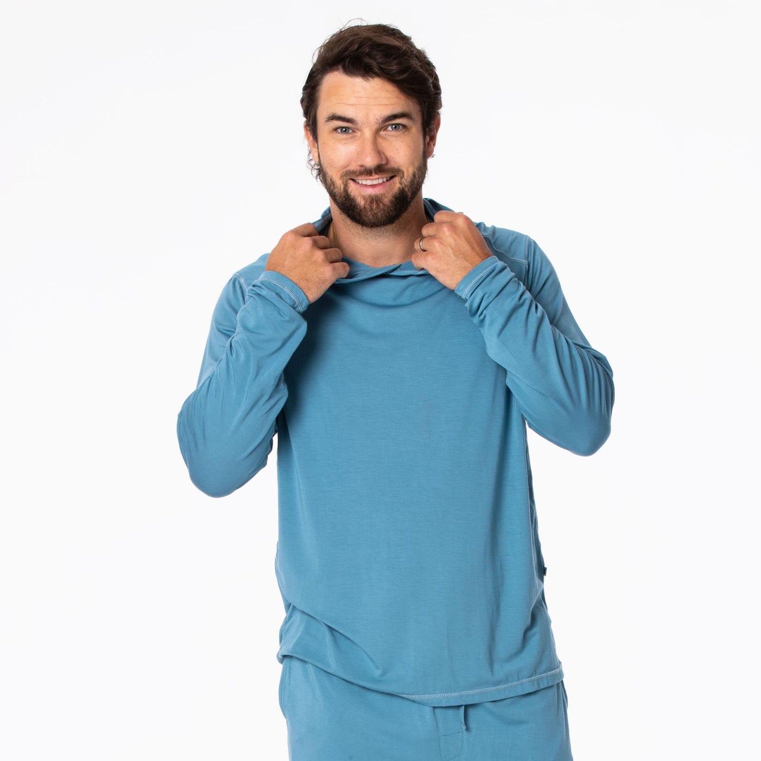 Men's Long Sleeve Hooded Tee in Parisian Blue