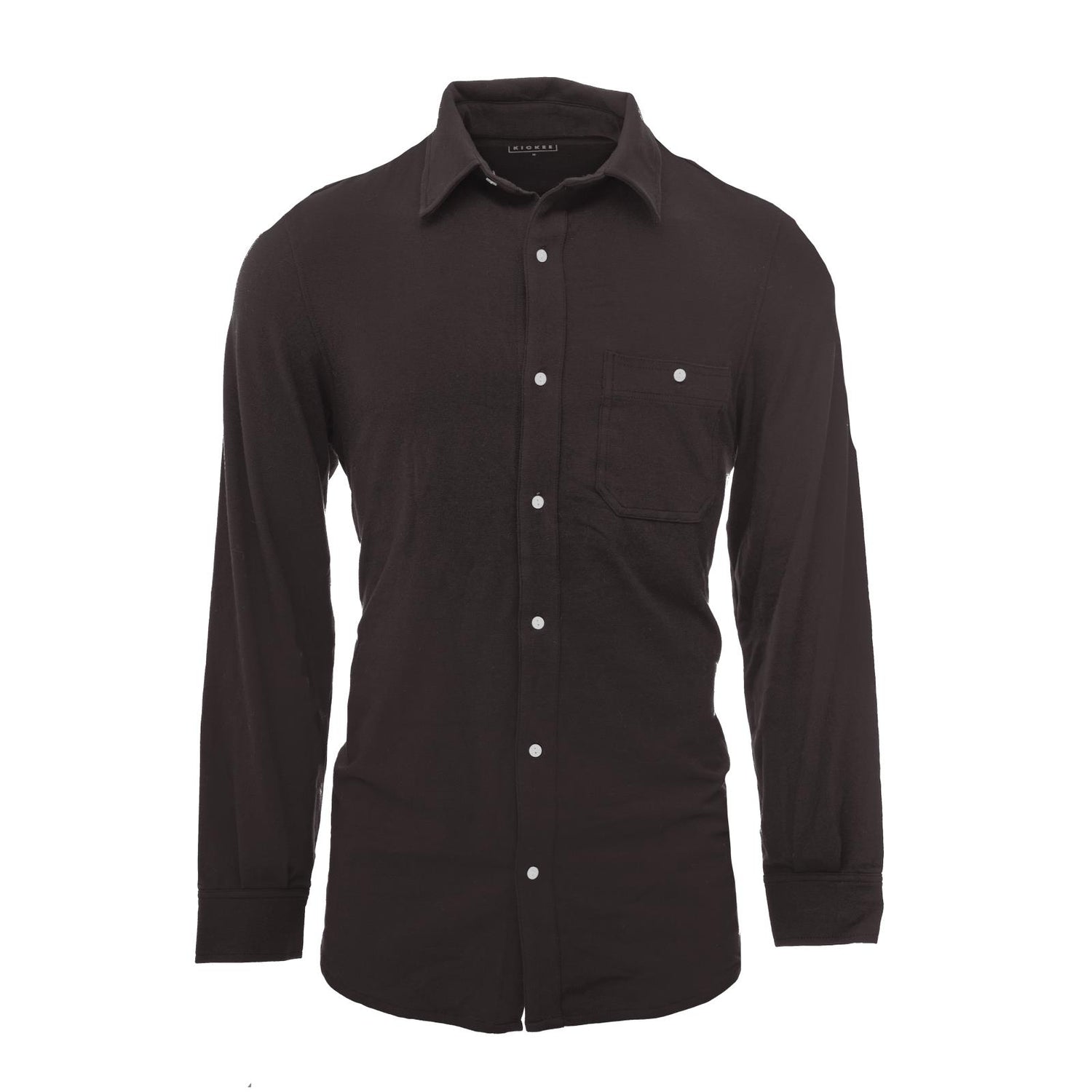 Men's Long Sleeve Luxe Jersey Button Down Shirt with Pocket in Midnight
