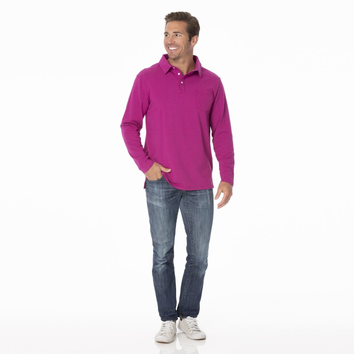 Men's Long Sleeve Luxe Jersey Polo in Orchid