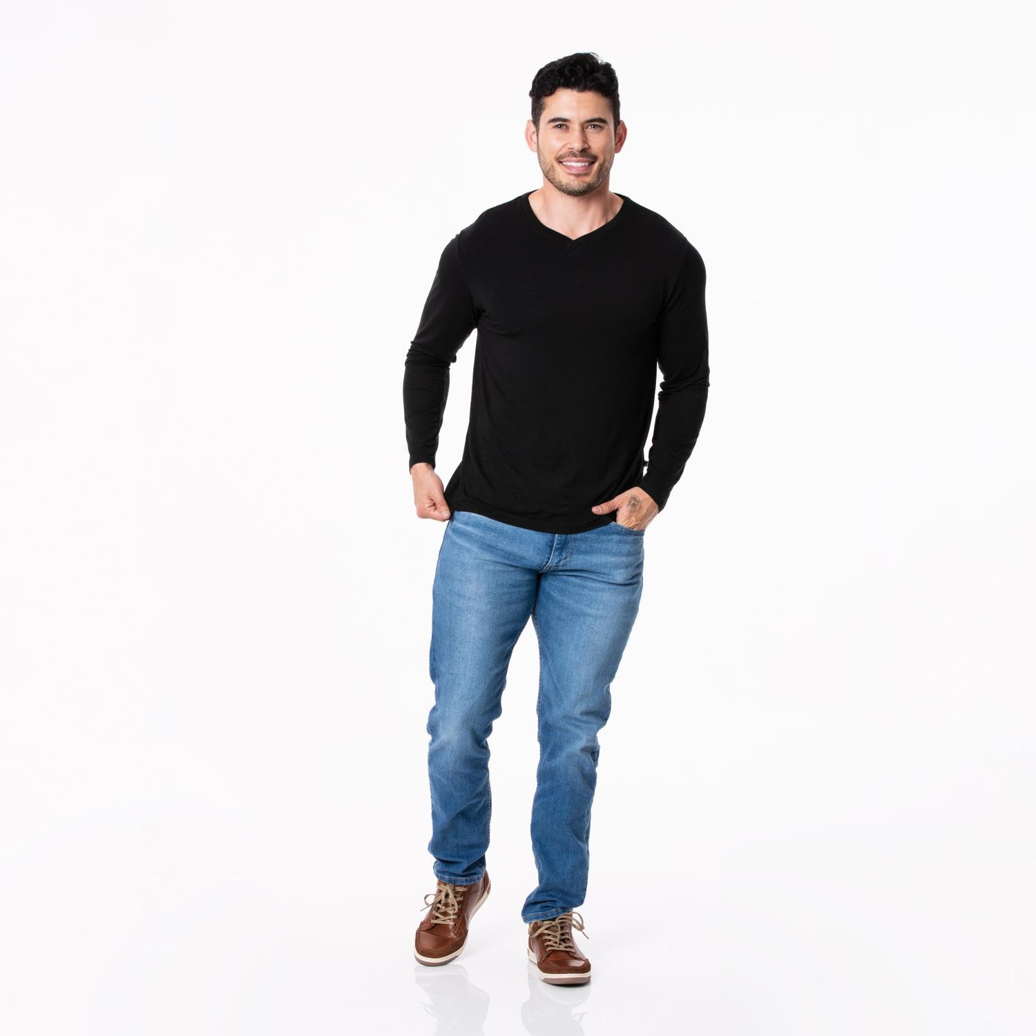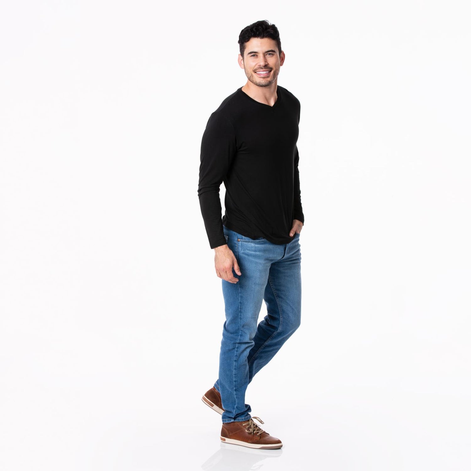 Men's Long Sleeve V-Neck Tee in Midnight