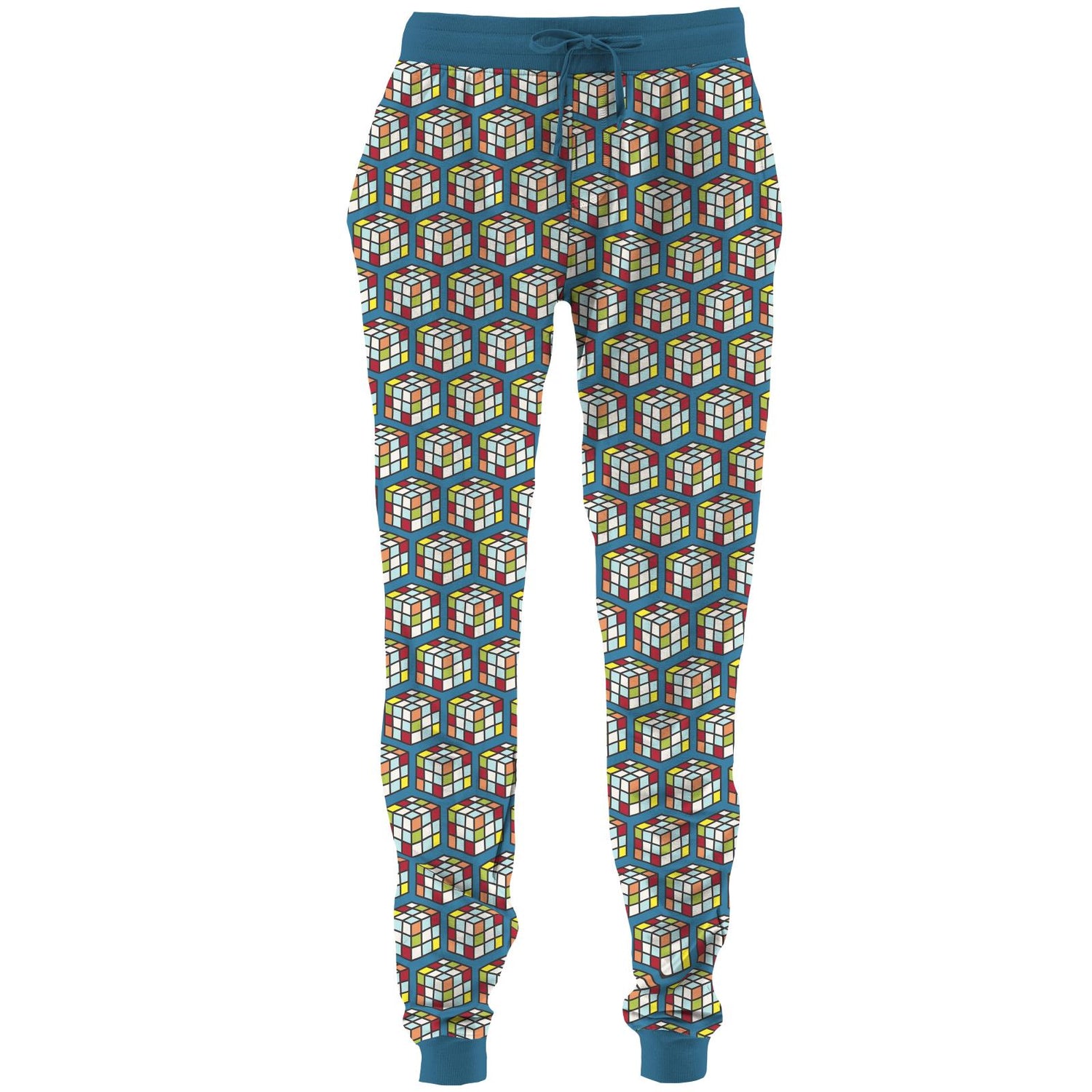 Men's Print Fleece Lounge Joggers in Cerulean Blue Puzzle Cube