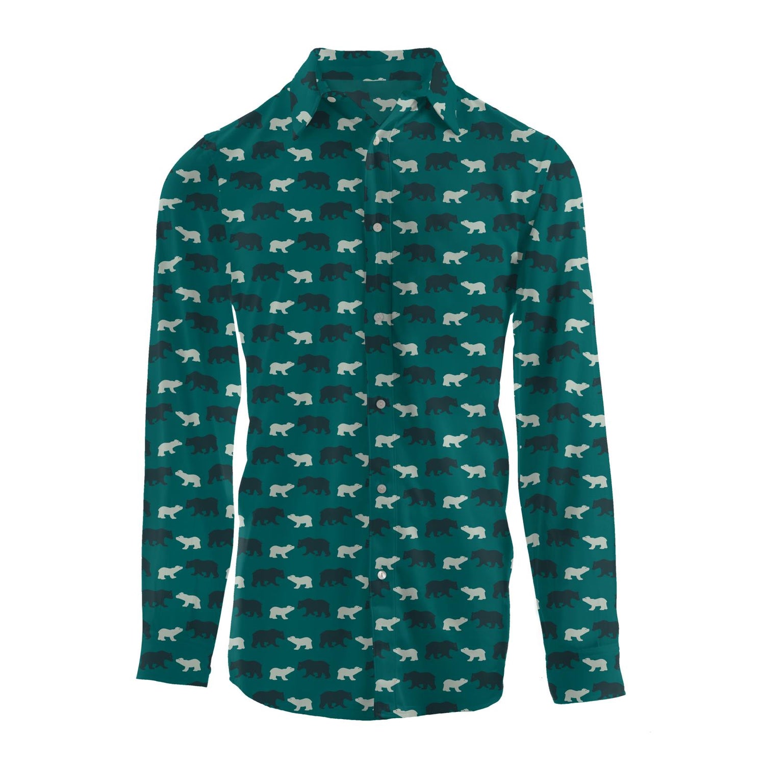 Men's Print Long Sleeve Button Down Shirt in Cedar Brown Bear