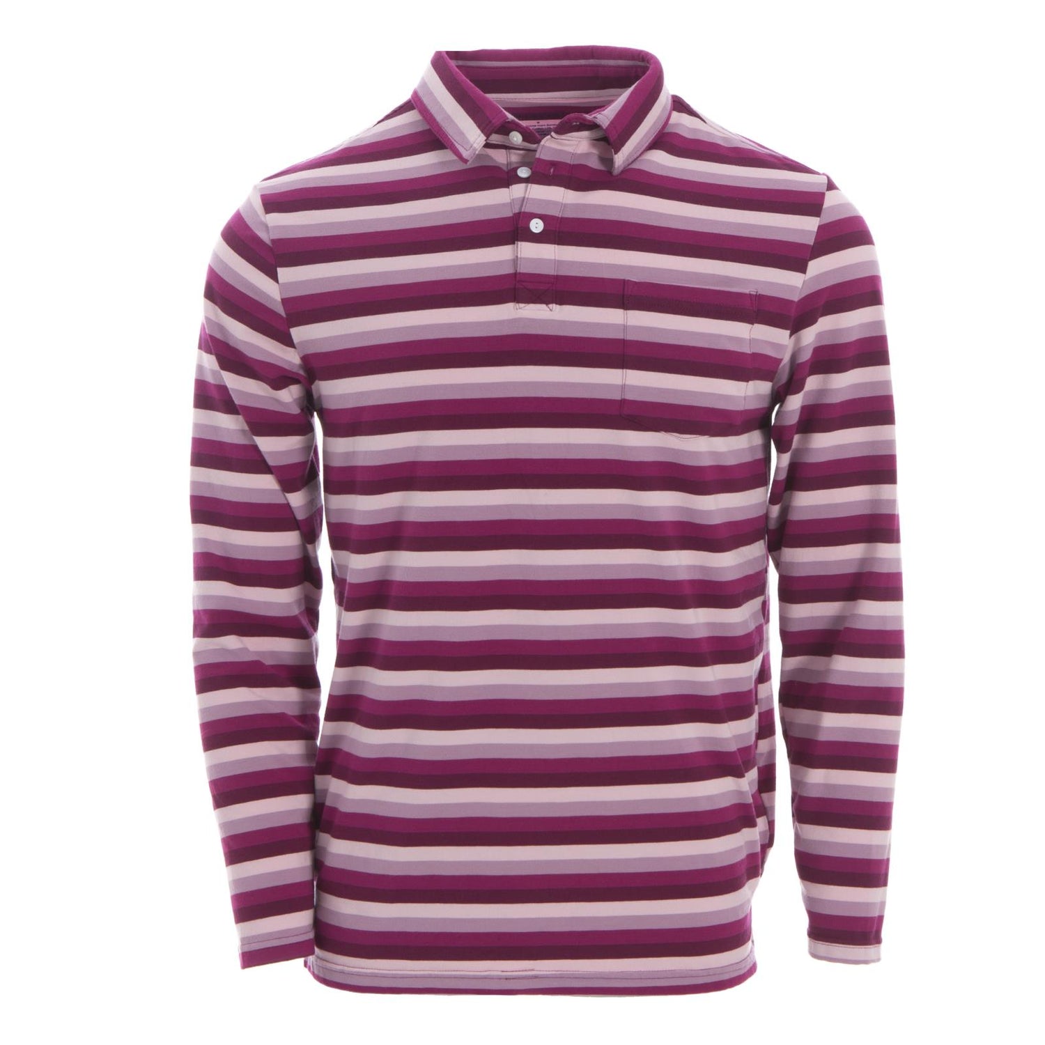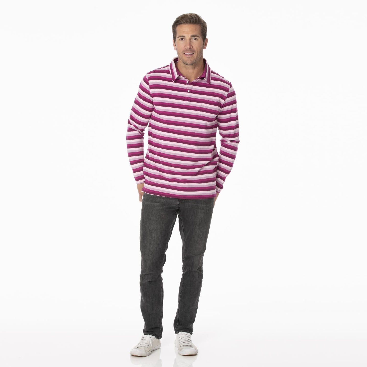 Men's Print Long Sleeve Luxe Jersey Polo with Pocket in Coral Stripe