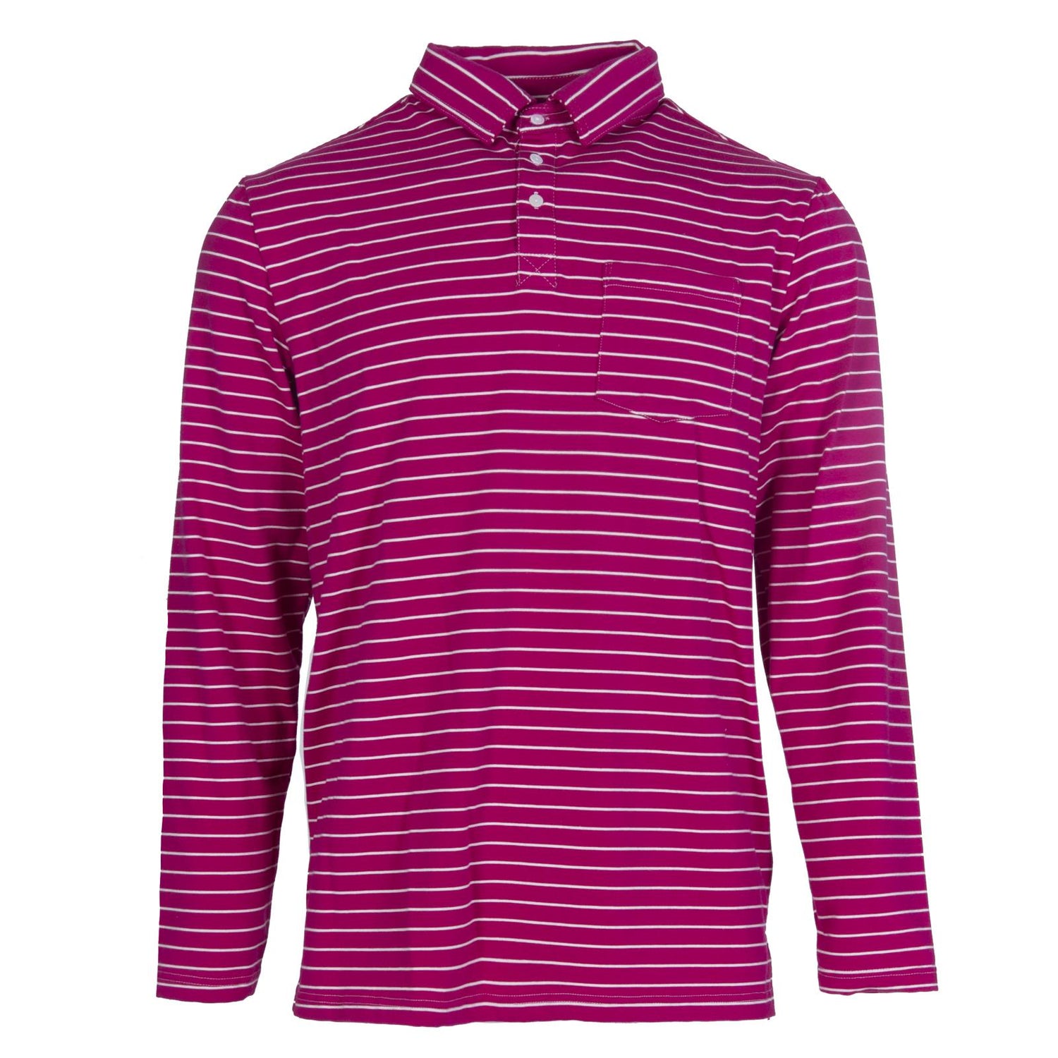 Men's Print Long Sleeve Luxe Jersey Polo with Pocket in Tokyo Dragonfruit Stripe