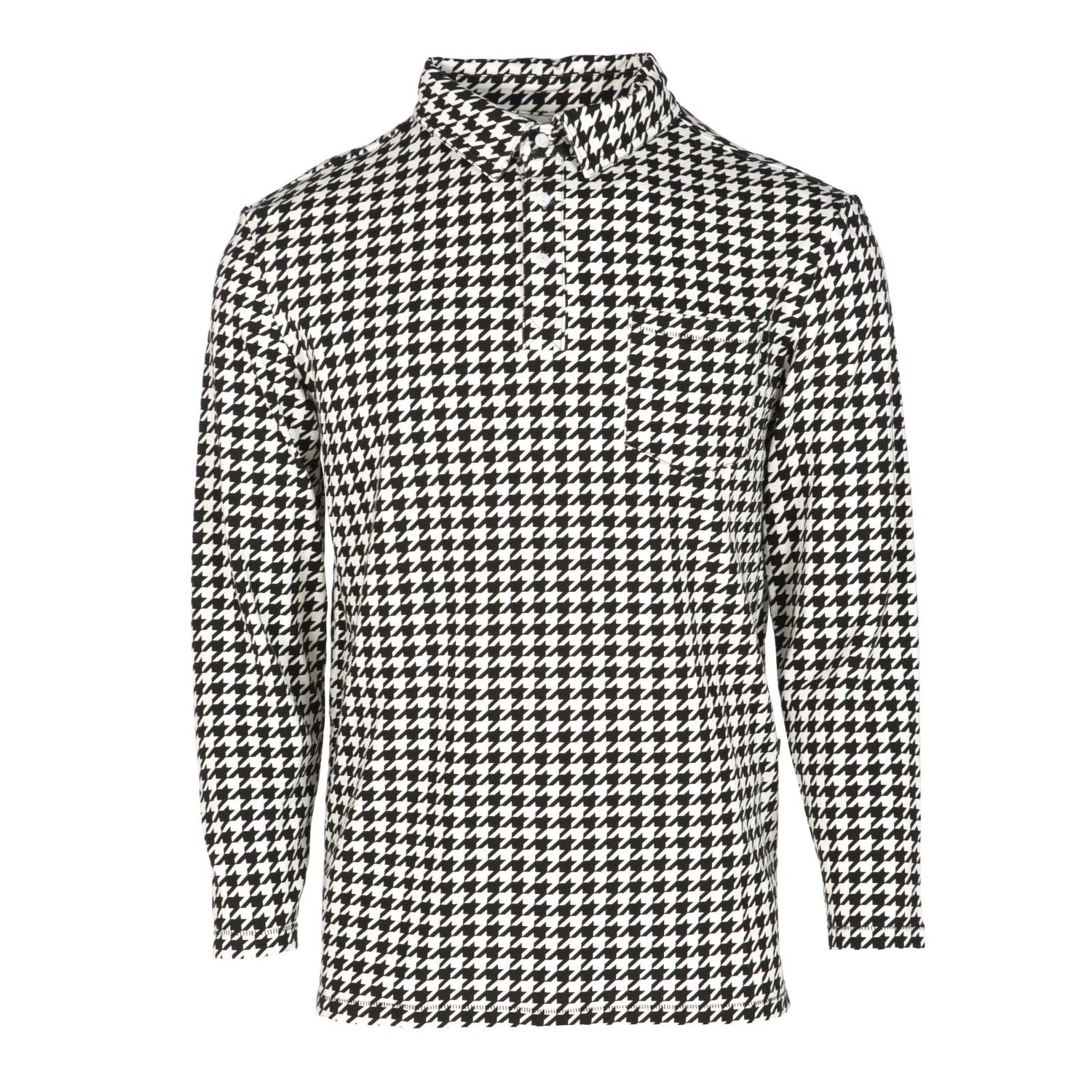 Men's Print Long Sleeve Luxe Jersey Polo with Pocket in Zebra Houndstooth