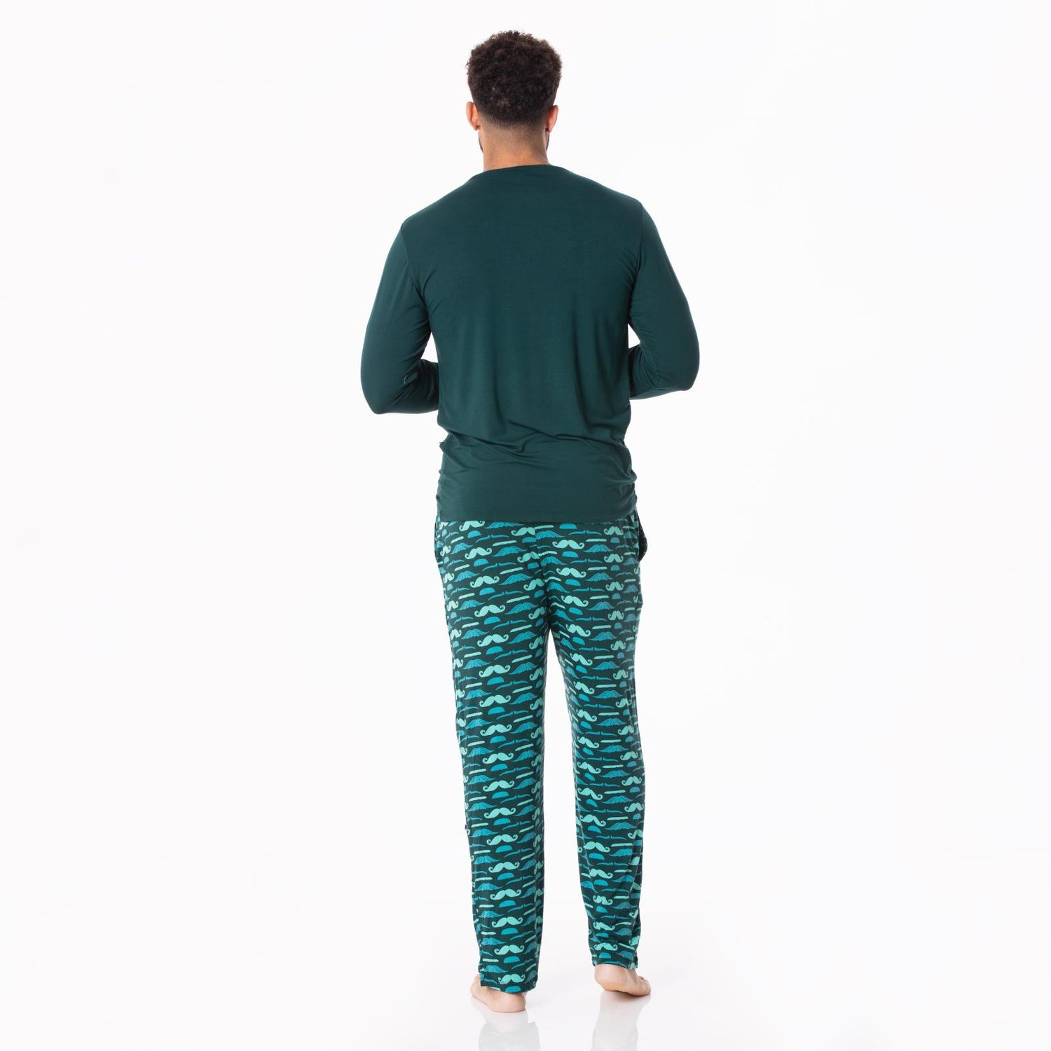 - Elastic waist, faux fly, and straight legs for an easy fit