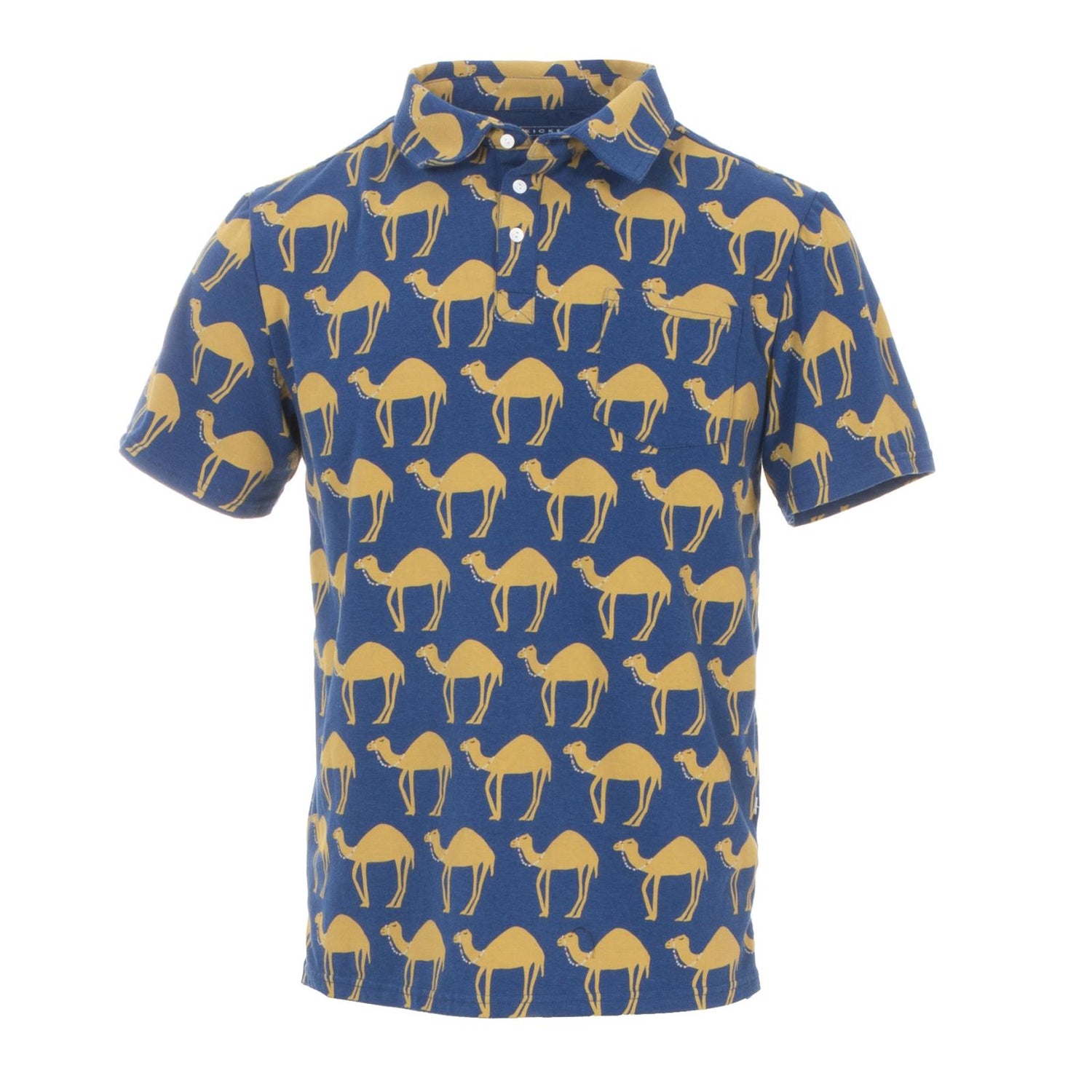 Men's Print Short Sleeve Luxe Jersey Polo with Pocket in Navy Camel