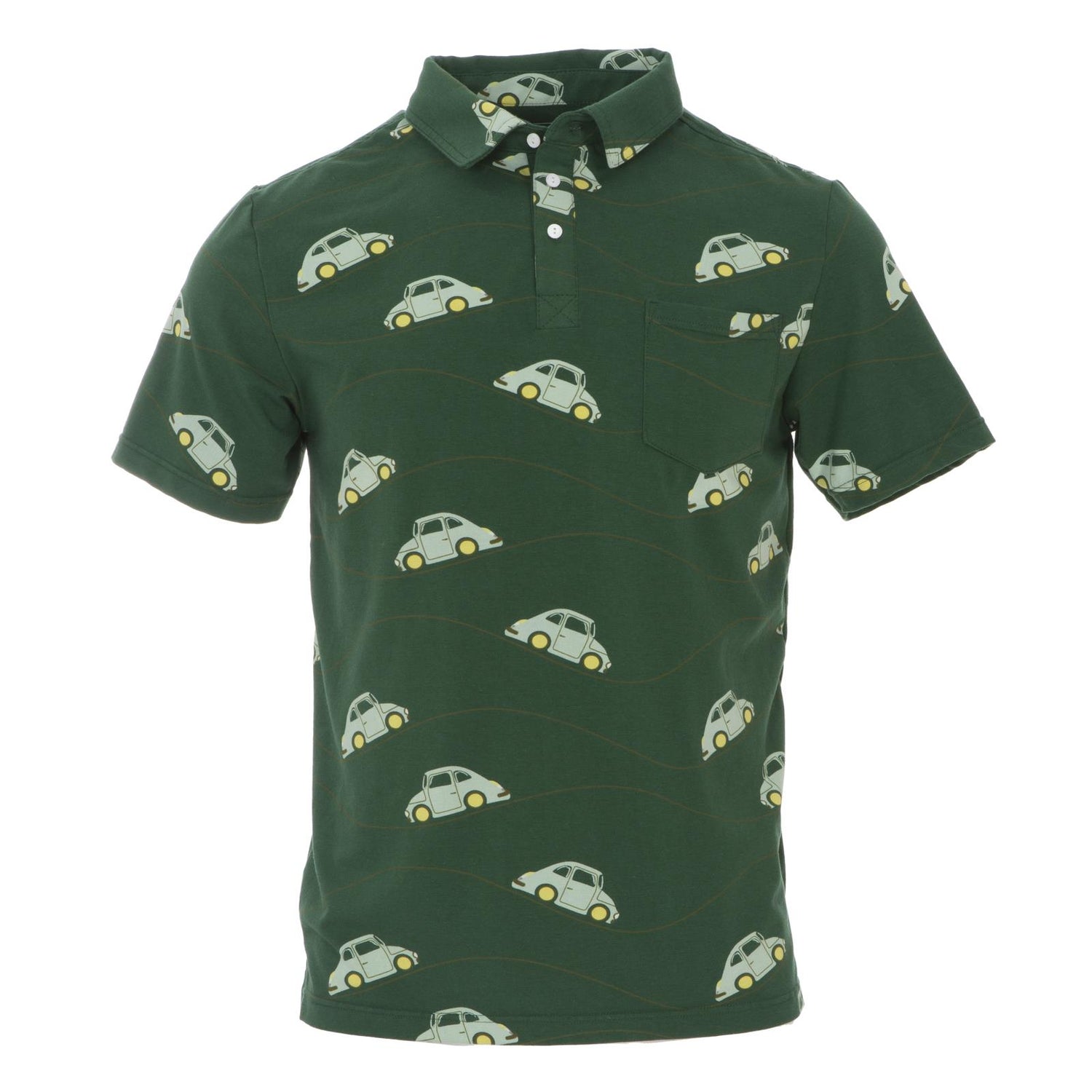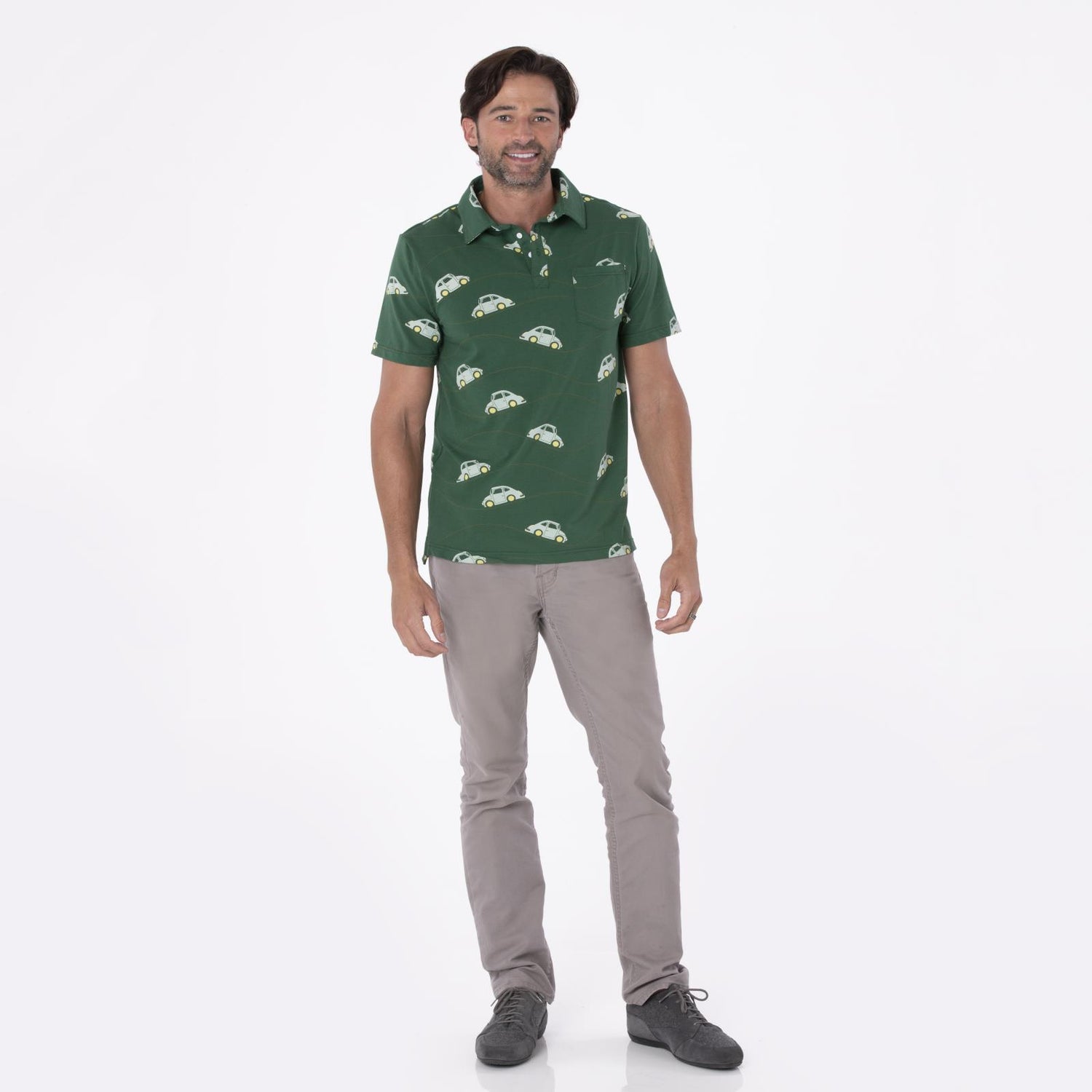 Men's Print Short Sleeve Luxe Jersey Polo with Pocket in Topiary Italian Car