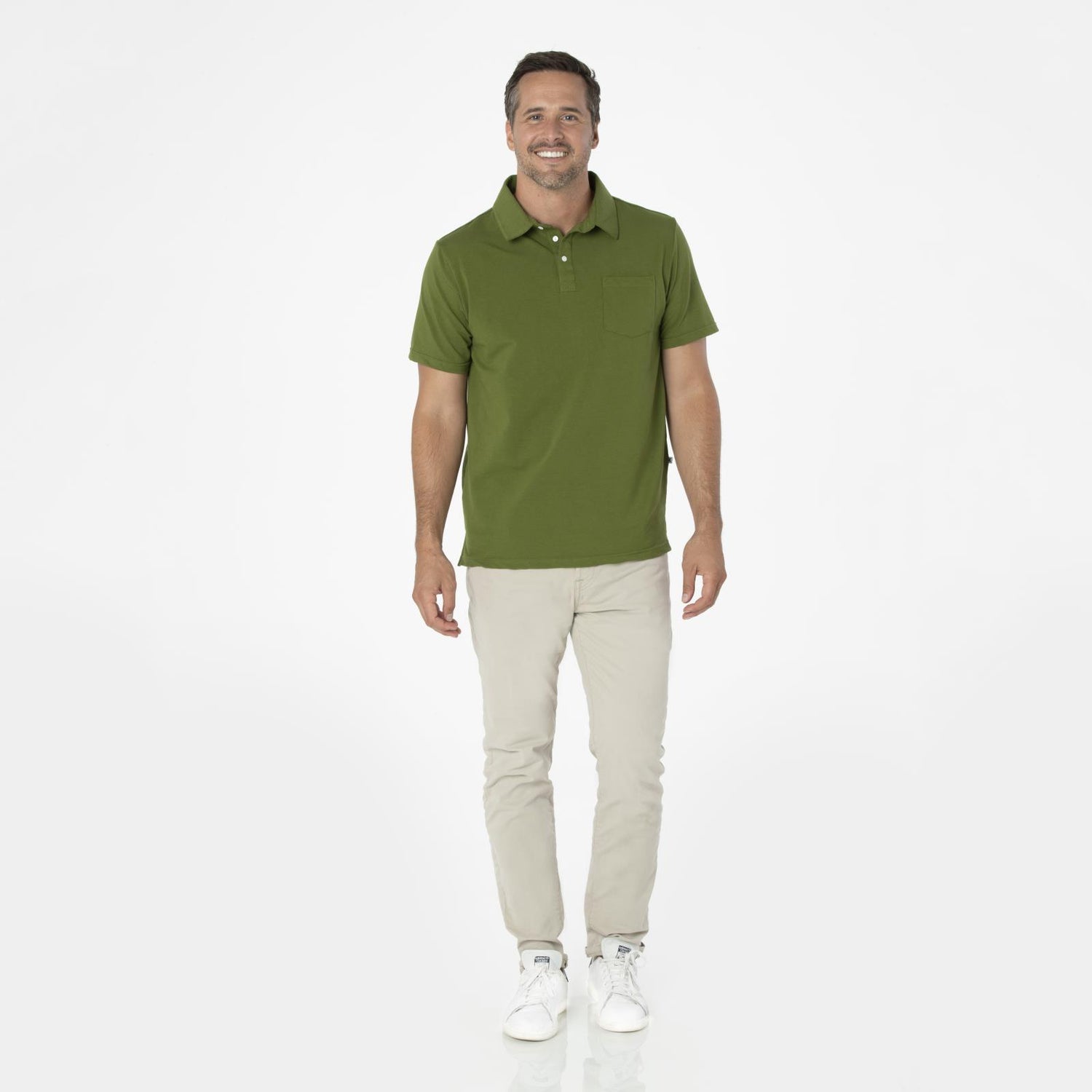 Men's Short Sleeve Luxe Jersey Polo with Pocket in Pesto
