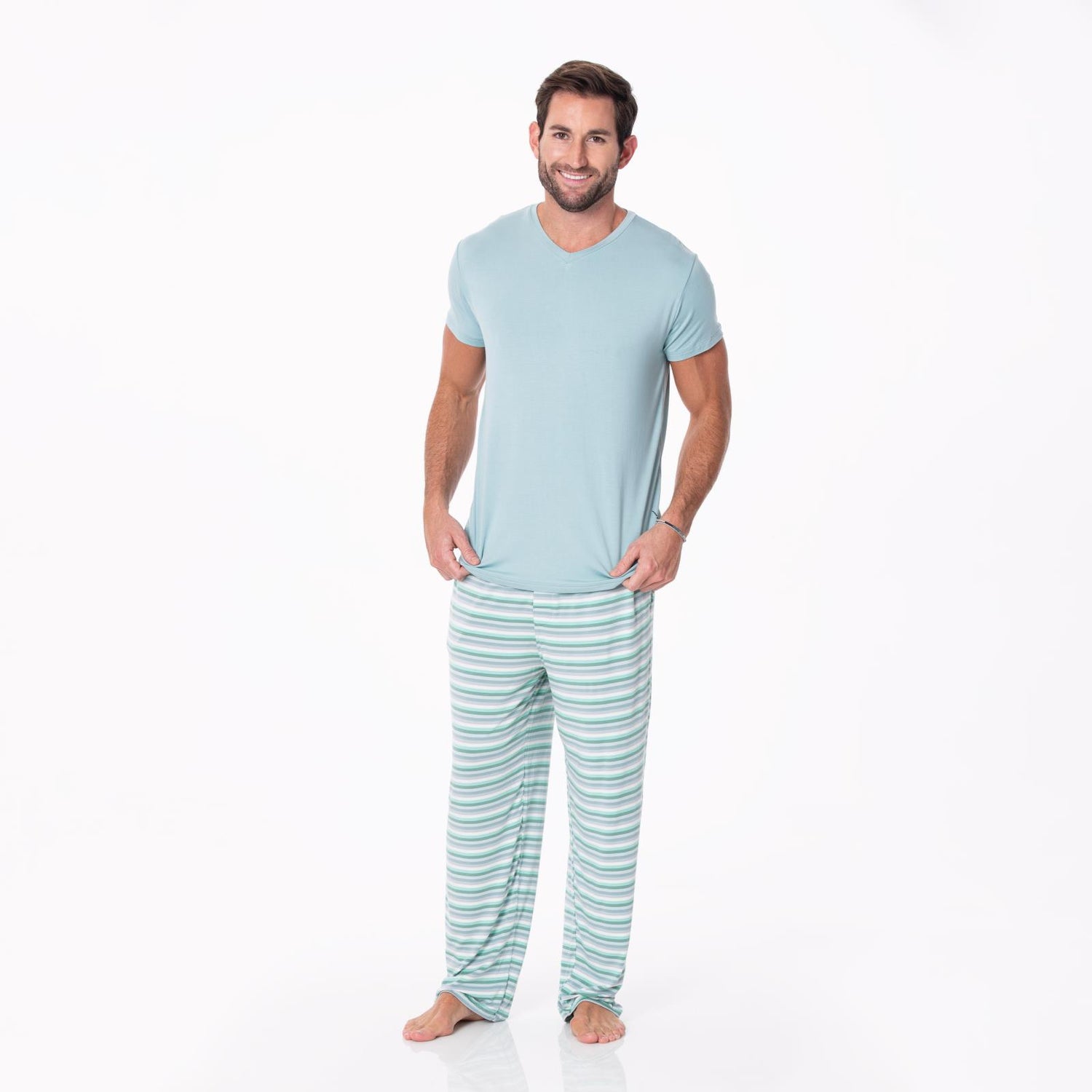 Men's Short Sleeve V-Neck Tee in Jade