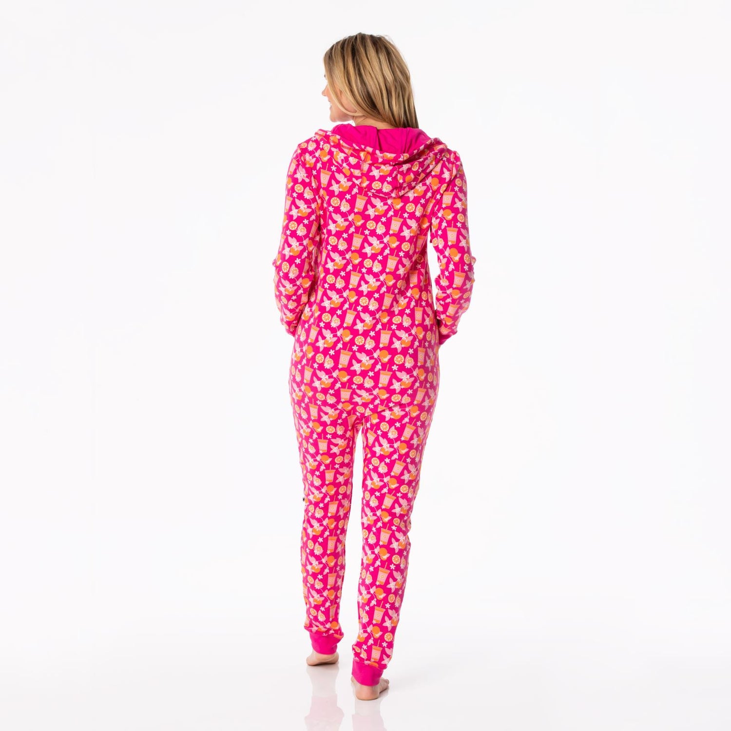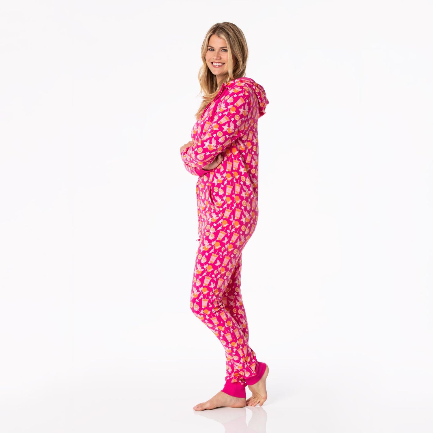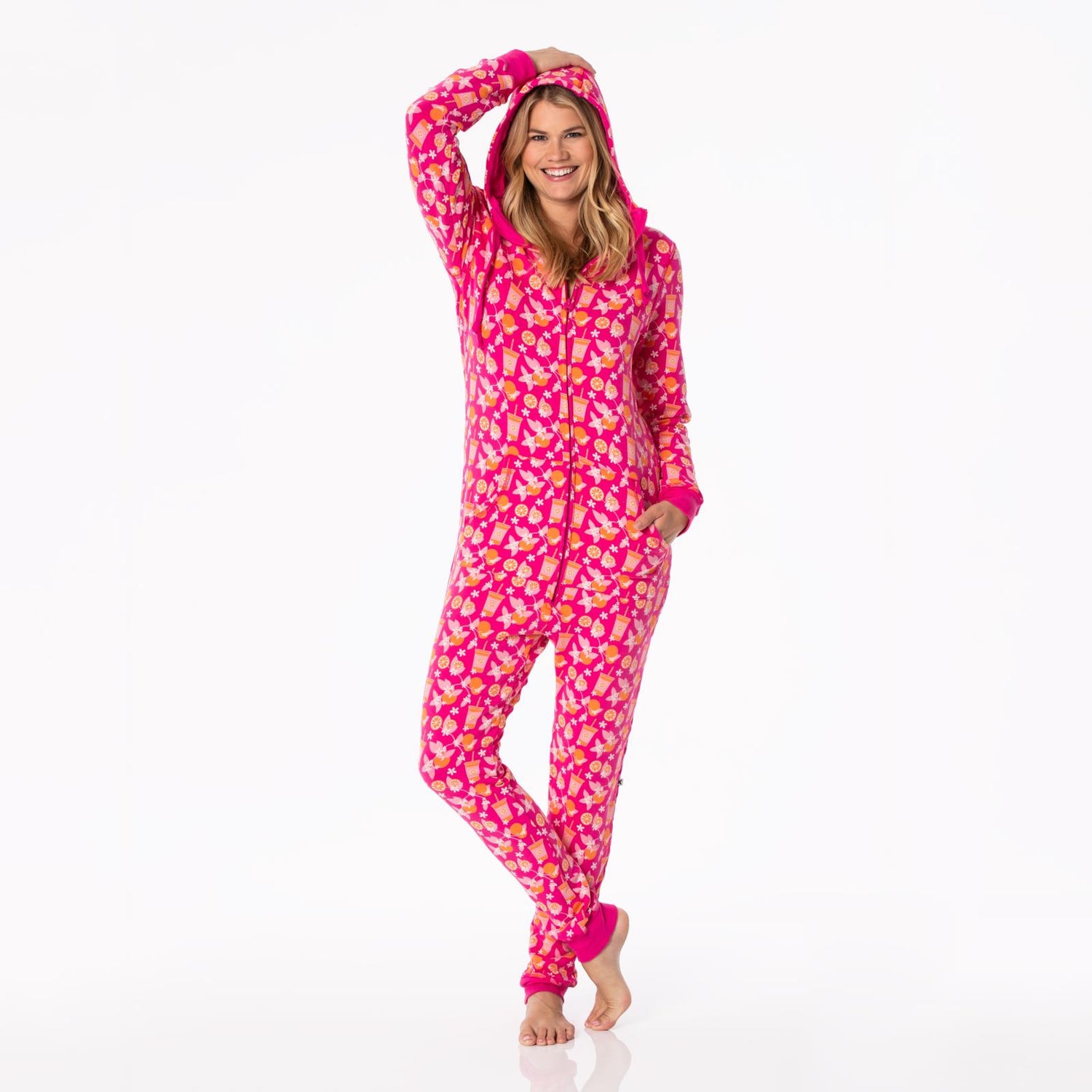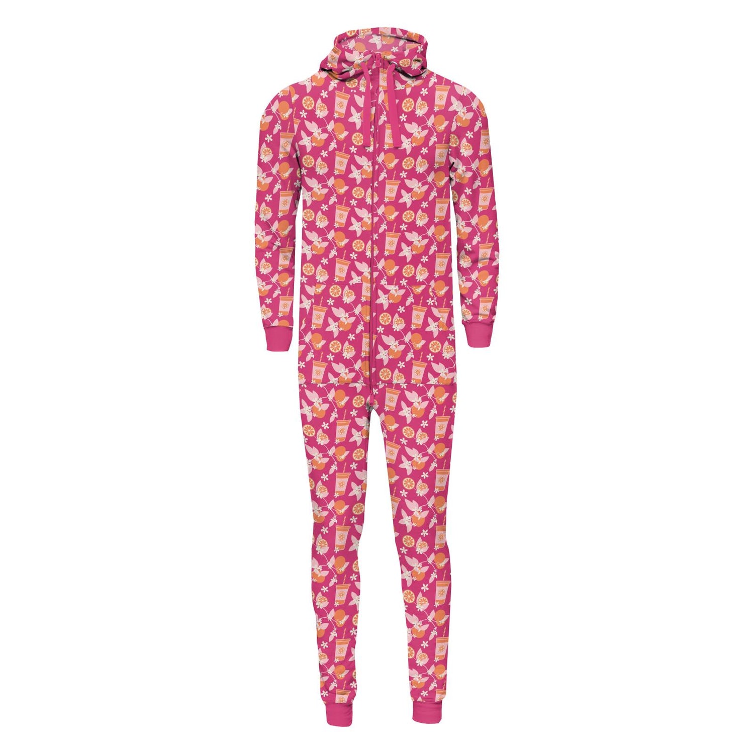 Print Adult Fleece Jumpsuit with Hood in Calypso Orange Cream