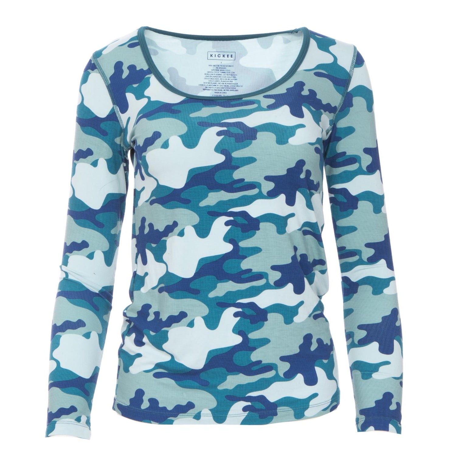 Print Long Sleeve Scoop Neck Tee in Oasis Military