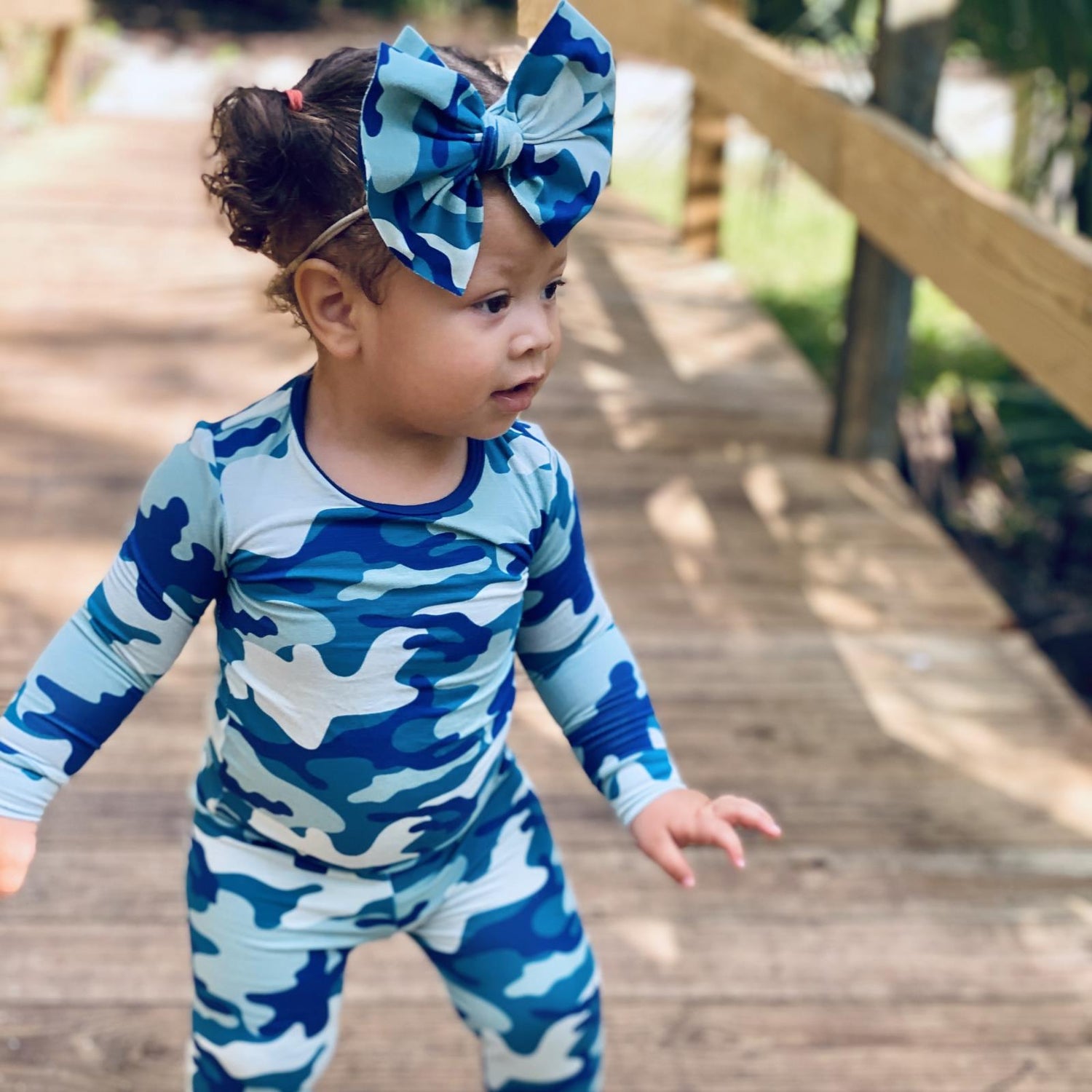 Print Luxe Big Bow with Nude Headband in Oasis Military
