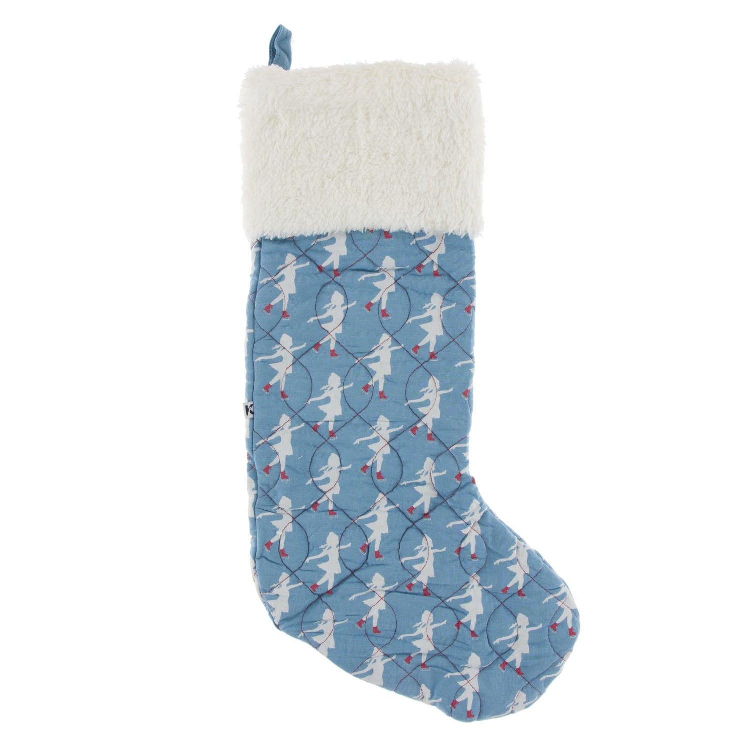 Print Quilted Stocking in Blue Moon Ice Skater/Crimson