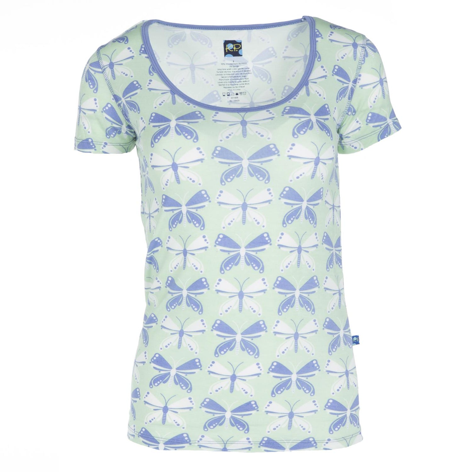 Print Short Sleeve Scoop Neck Tee in Aloe Butterfly