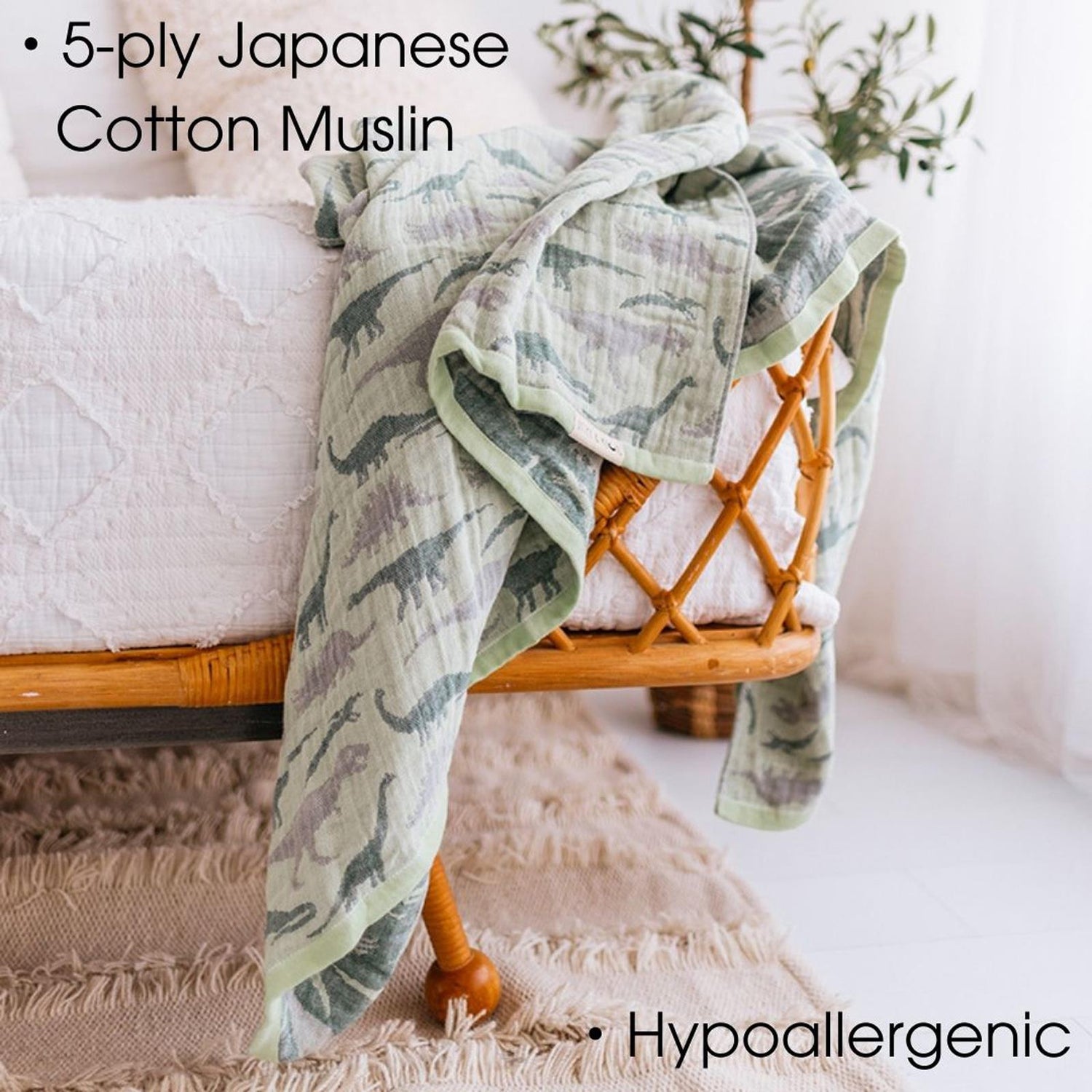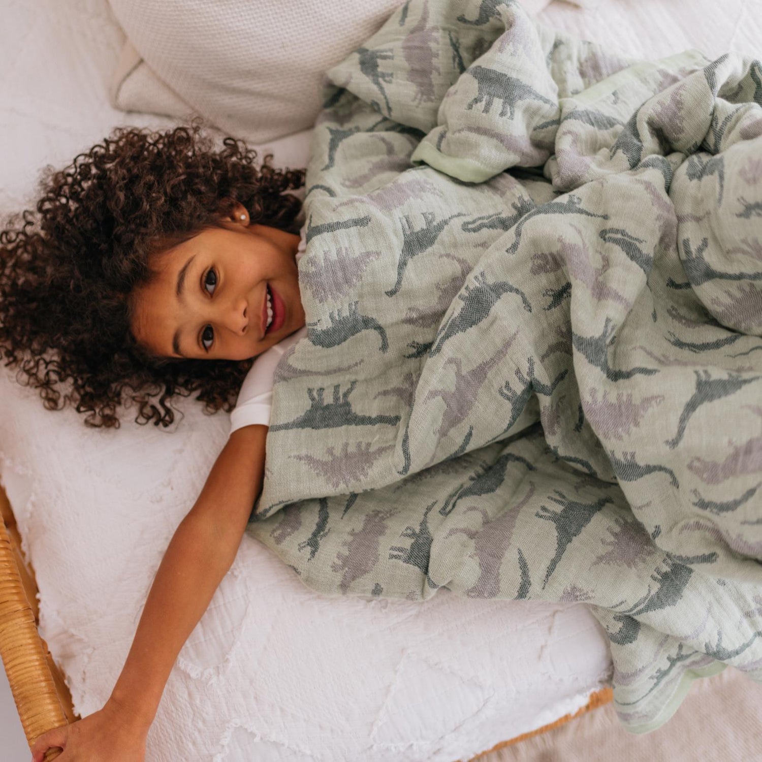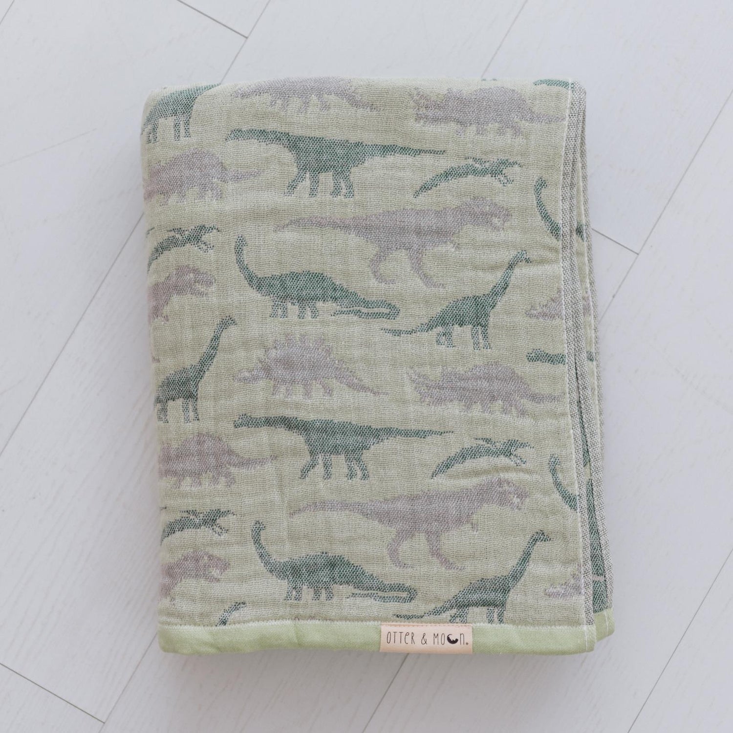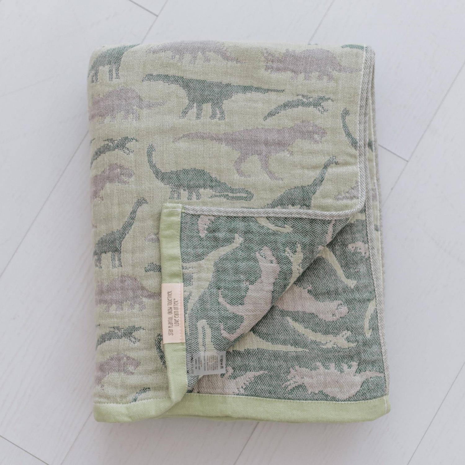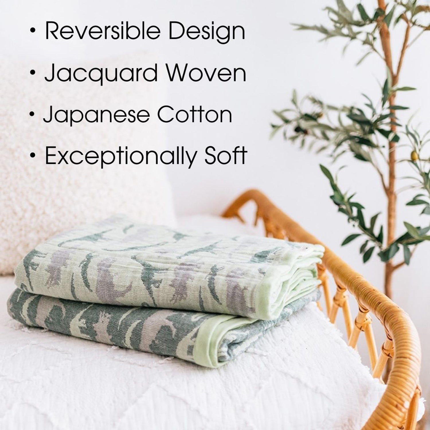Soft Spun Cotton Jacquard Muslin Blanket 40 x 60 in Cypress/Mossy Meadow Dino