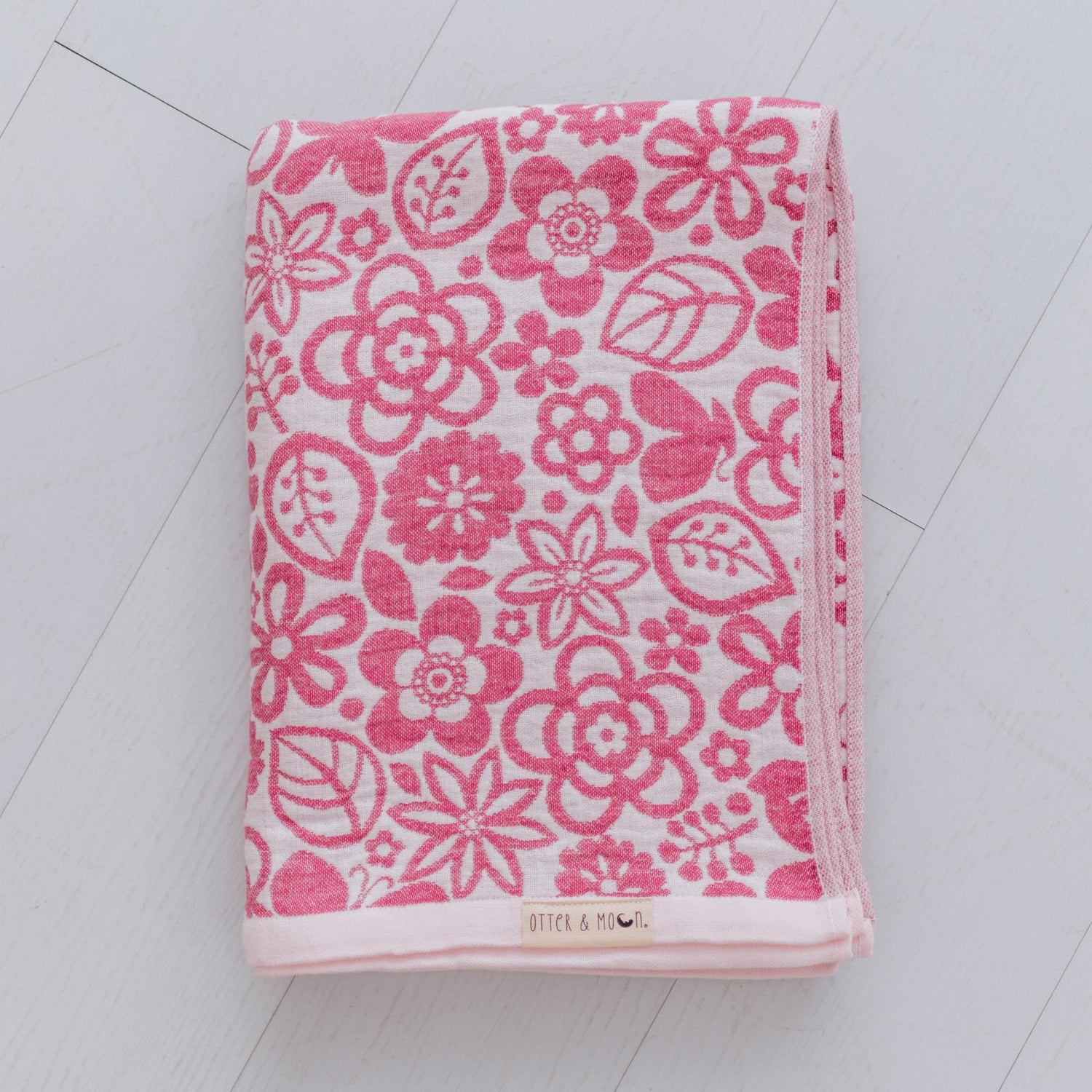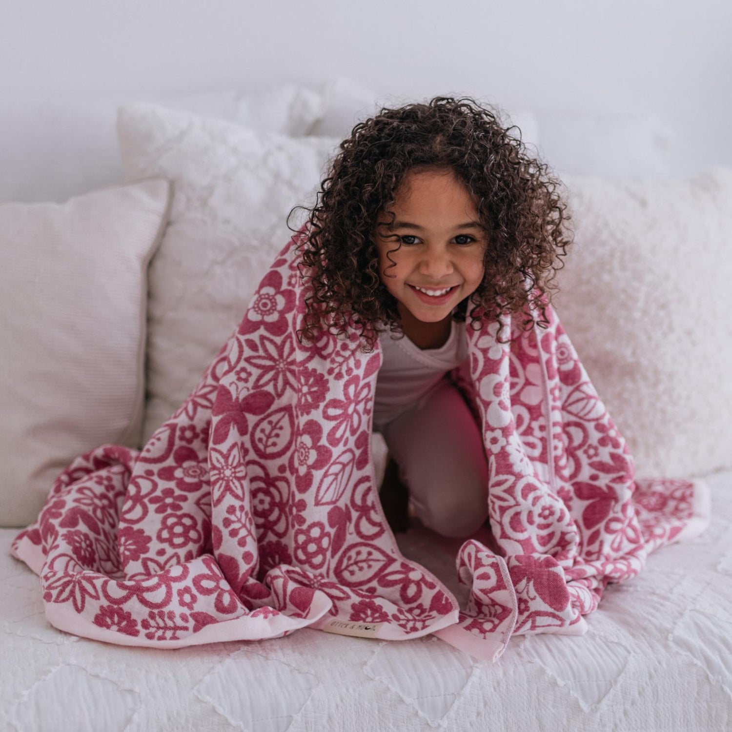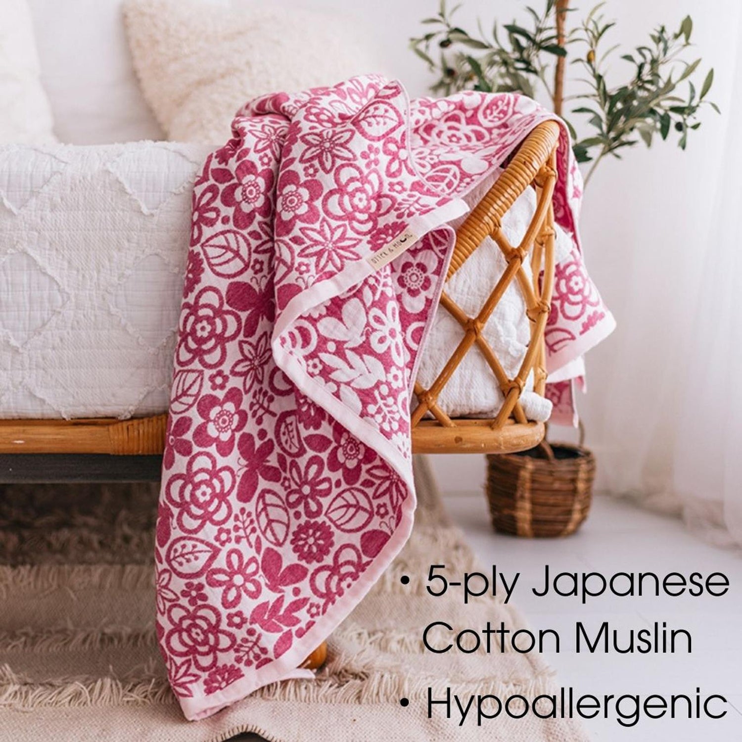 Soft Spun Cotton Jacquard Muslin Blanket 40 x 60 in Fuchsia/Ballet Slipper Butterflies & Blooms
