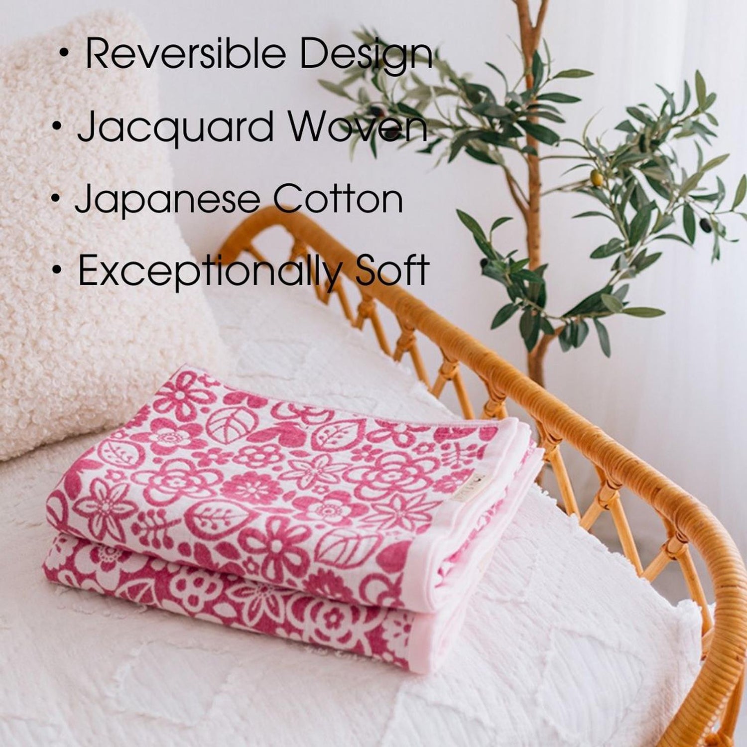 These 100% cotton muslin blankets are expertly made in Japan using a special soft-spun technique that brings out the natural softness of the cotton. Thoughtfully designed for comfort, they are breathable, durable, and gentle on even the most sensitive skin. The luxurious 6-ply construction offers a cozy weight and lasting quality, making these blankets as comforting as they are beautiful. Each design is intricately woven - not printed - using a jacquard technique, resulting in a double-sided pattern that adds elegance to every use.