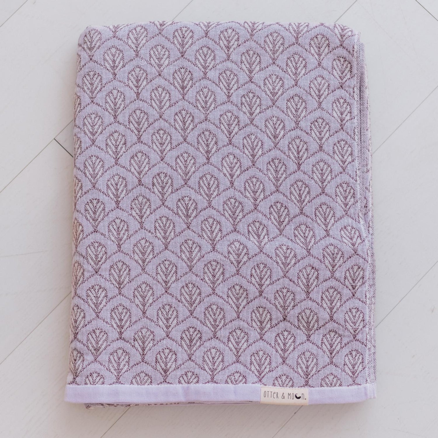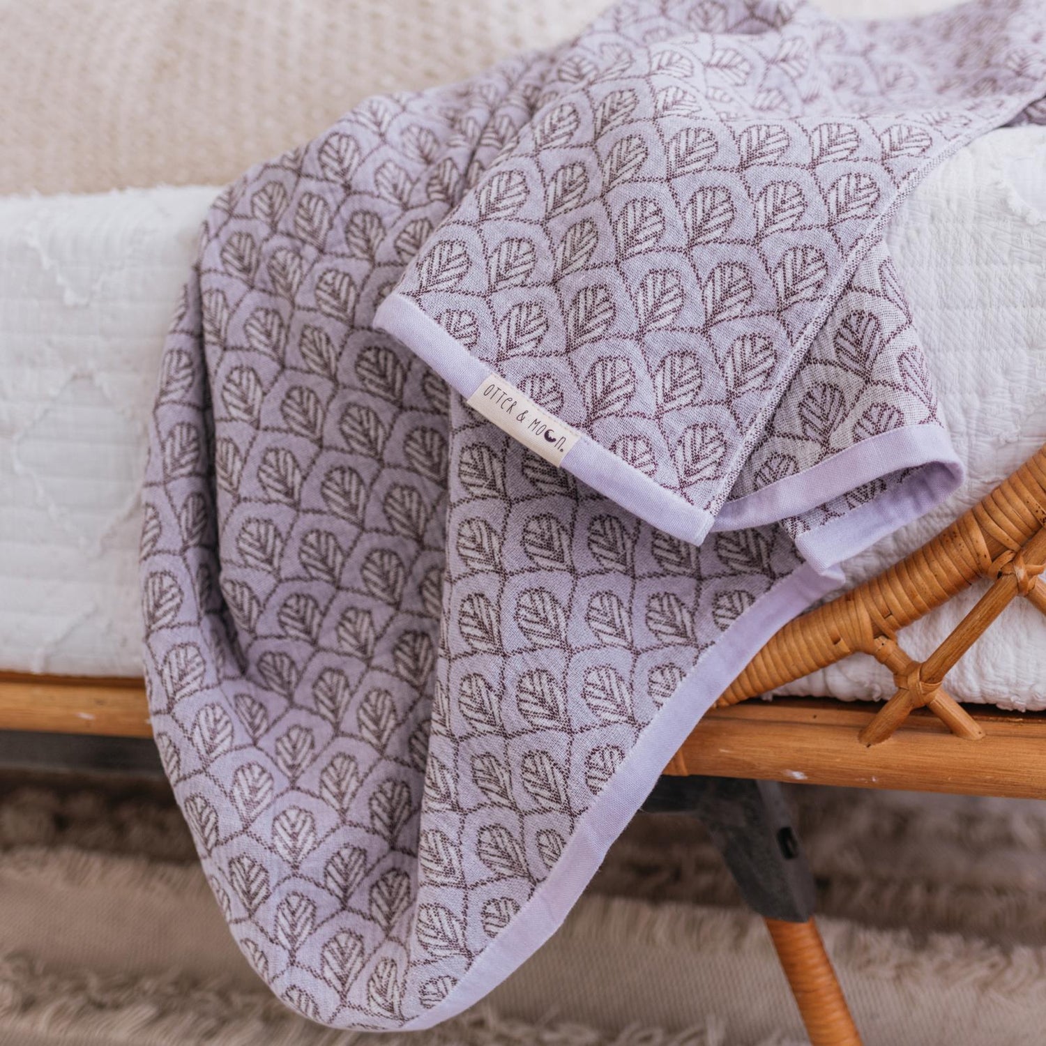 Soft Spun Cotton Jacquard Muslin Blanket 55 x 75 in Water Lily/Wisteria Deco Leaves