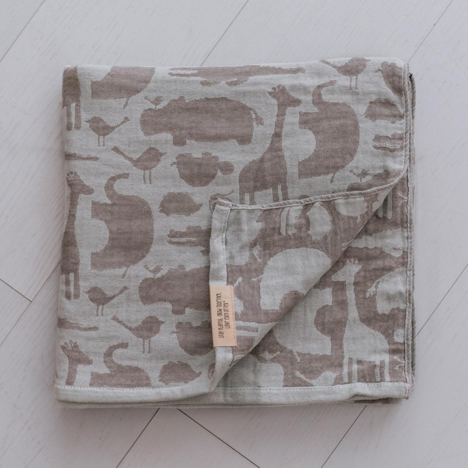 Soft Spun Cotton Jacquard Muslin Swaddle 47 x 47 in Sage/Eucalyptus Multi Animal