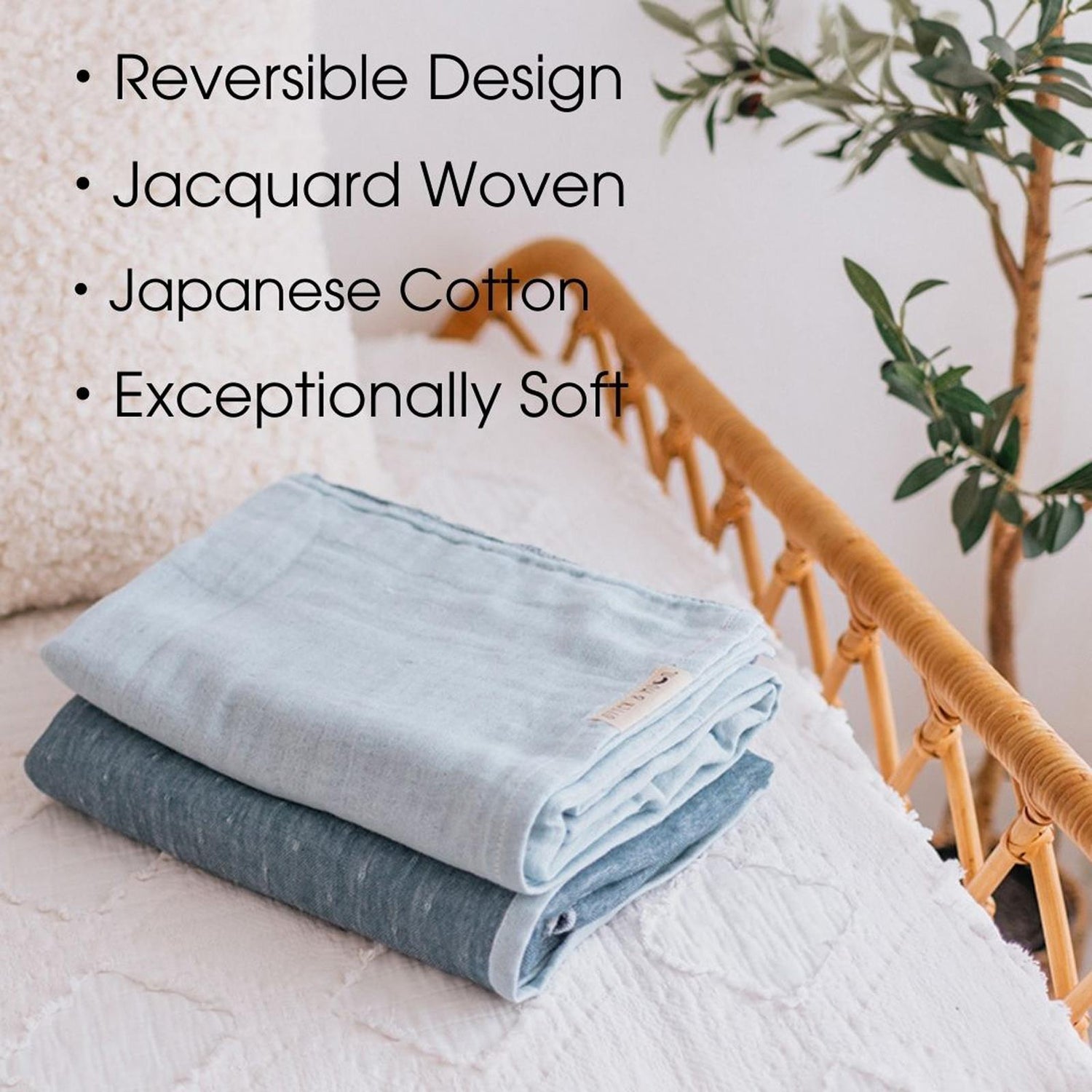 These 100% cotton muslin blankets are made in Japan using a special soft-spun technique that enhances the natural softness of the cotton. Lightweight, breathable, and gentle on the skin, they're perfect for even the most sensitive users. Their incredible versatility makes them ideal as swaddling blankets, nursing covers, stroller covers, or cozy throws. Each design is woven - not printed - using a jacquard technique, giving the blankets a beautiful, double-sided finish that's as elegant as it is functional.