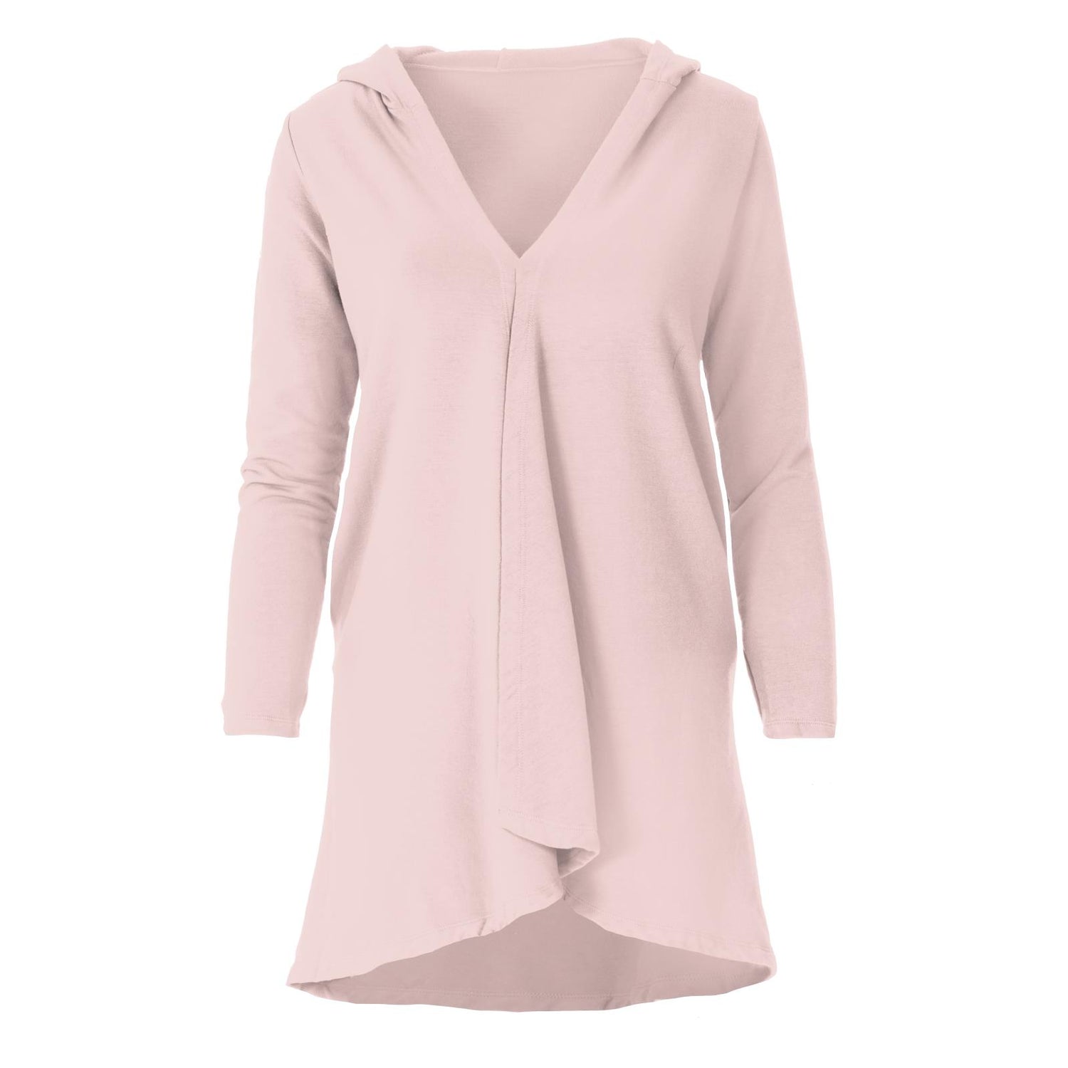 Women's Fleece Hooded Cardigan with Pockets in Baby Rose