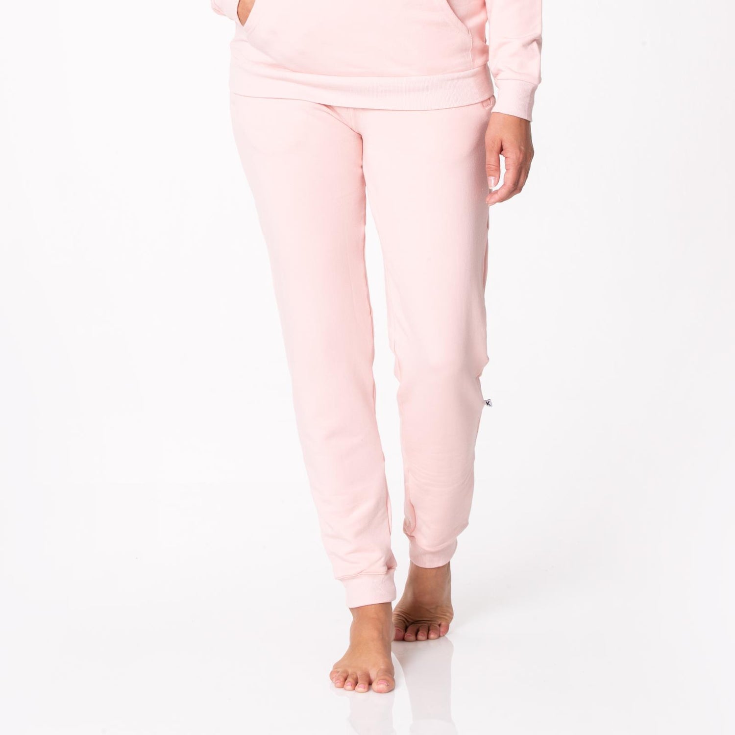 So deliciously soft you'll be tempted to wear them all day every day. A wide waistband with adjustable drawstring customizes the fit and the side pockets keep emergency items like coffee money and car keys at the ready. With a classy tapered leg and slouchy cuffs for style. Made from our super stretchy and cozy-soft bamboo-cotton fleece.