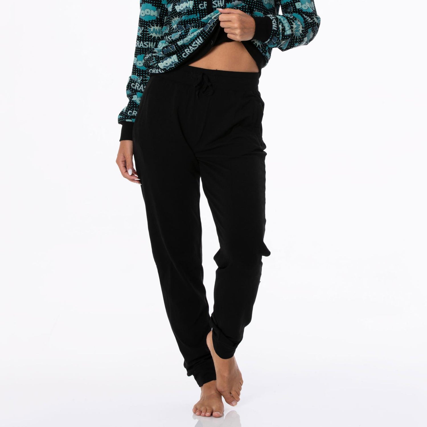 So deliciously soft you'll be tempted to wear them all day every day. A wide waistband with adjustable drawstring customizes the fit and the side pockets keep emergency items like coffee money and car keys at the ready. With a classy tapered leg and slouchy cuffs for style. Made from our super stretchy and cozy-soft bamboo-cotton fleece.