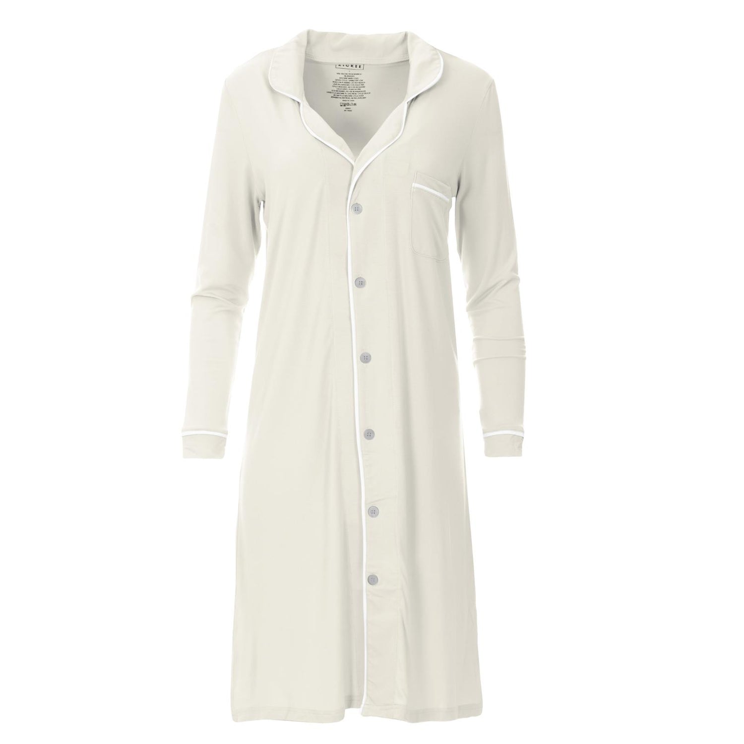 Women's Long Sleeve Button Down Night Shirt in Natural