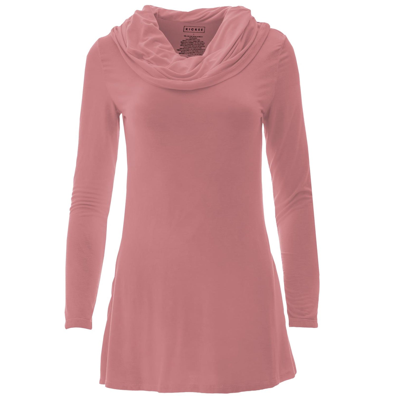 Women's Long Sleeve Cowl-Neck Tunic in Desert Rose