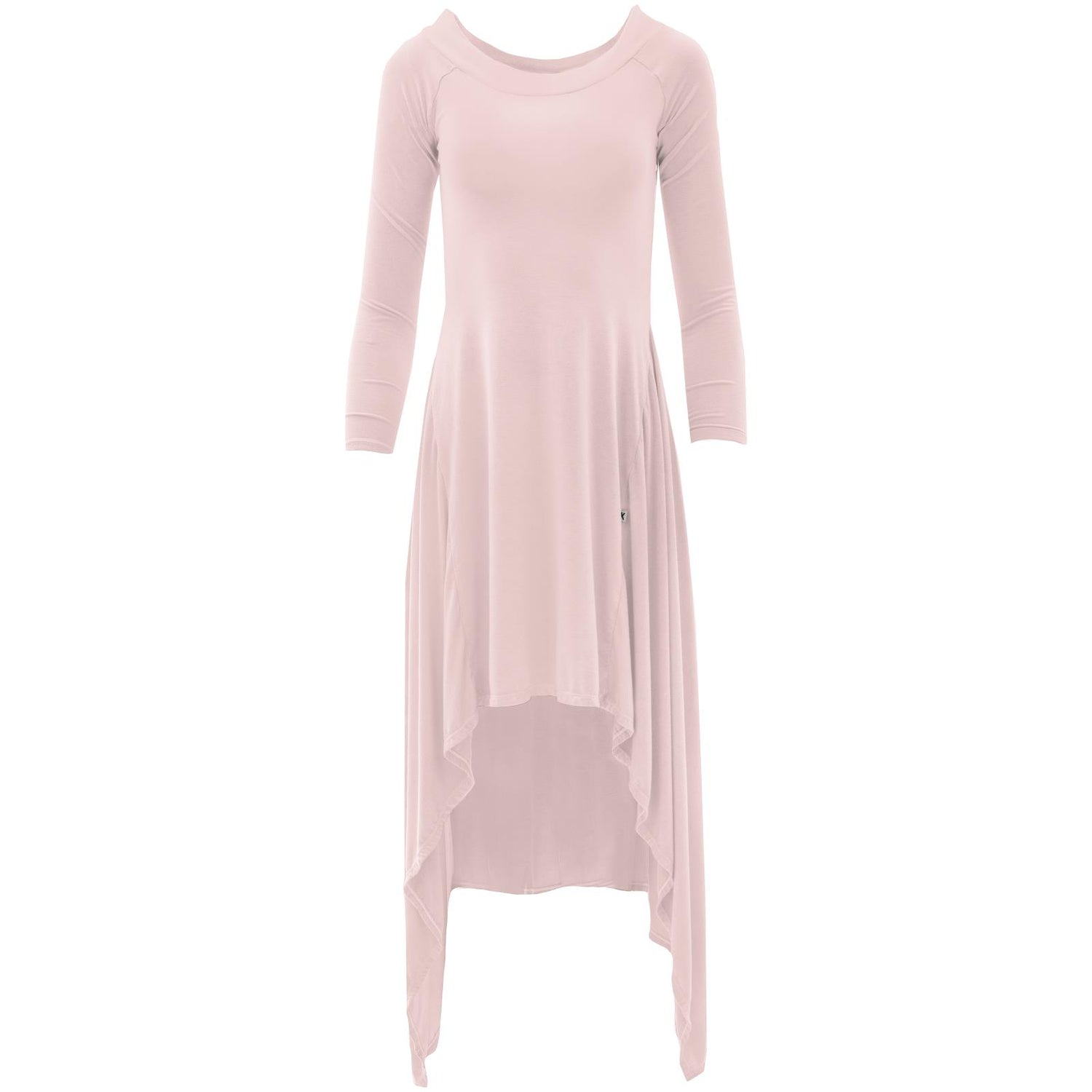 Women's Long Sleeve Hi Lo Raglan Dress in Baby Rose