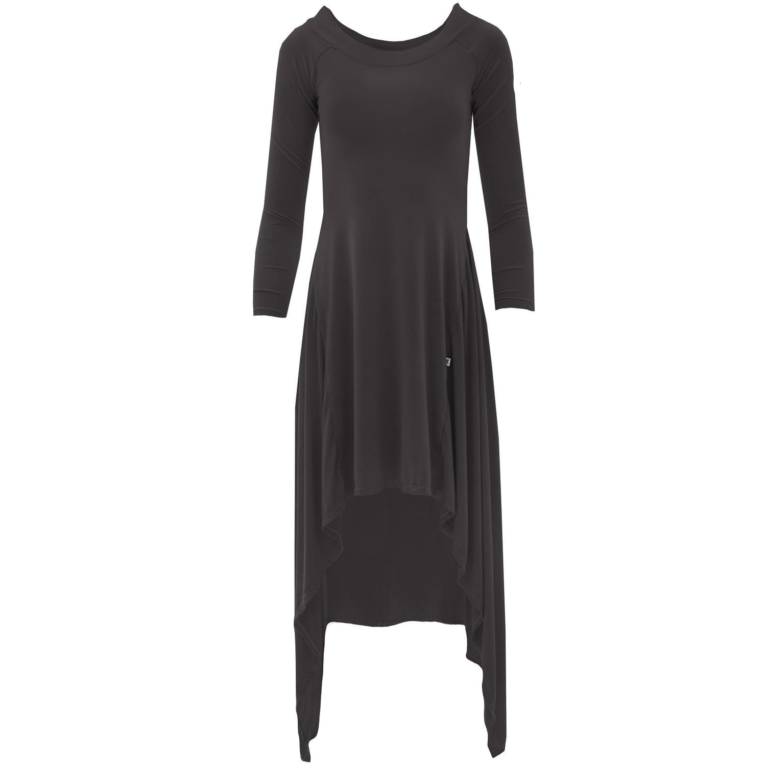 - Long sleeve dress with boat neckline and high-low hem