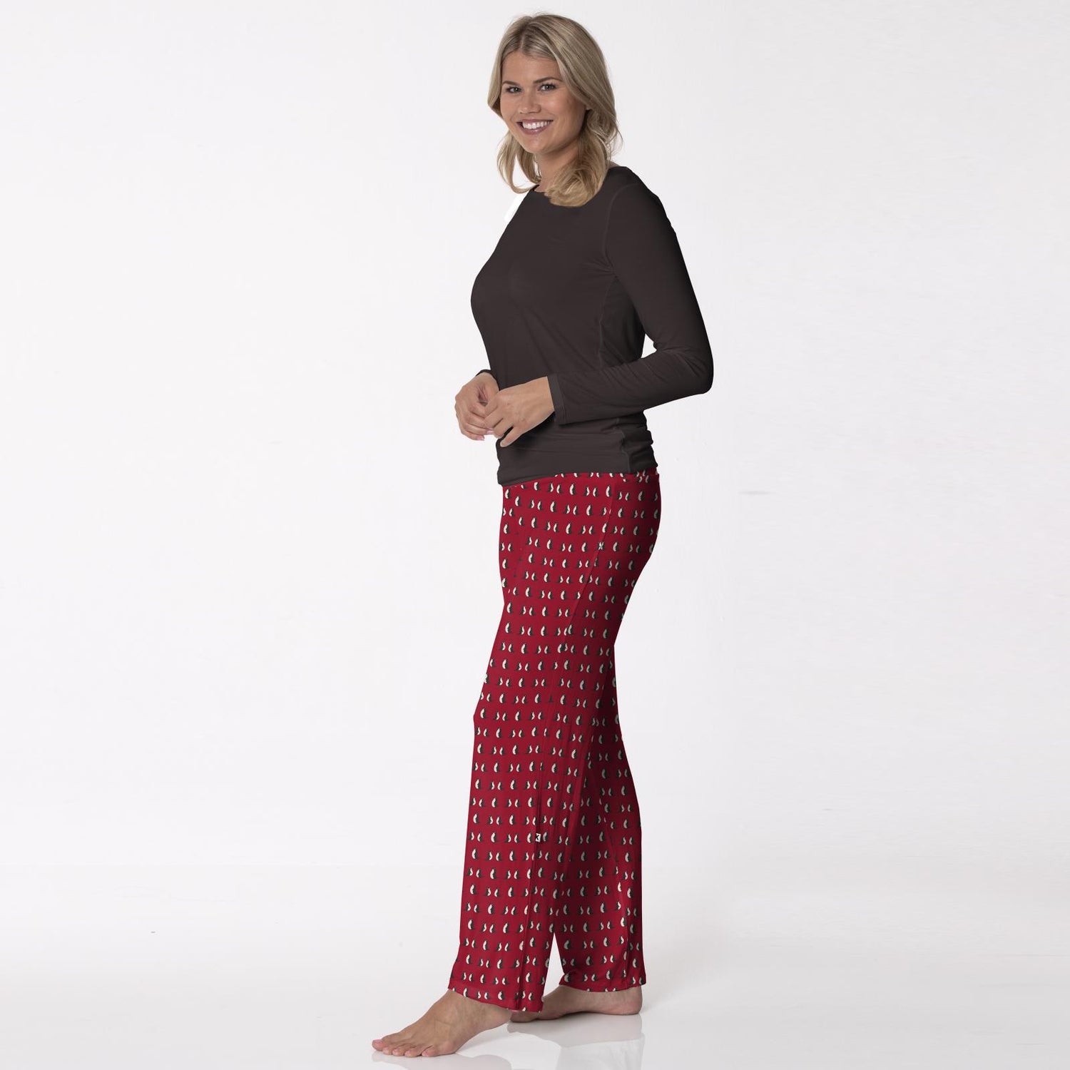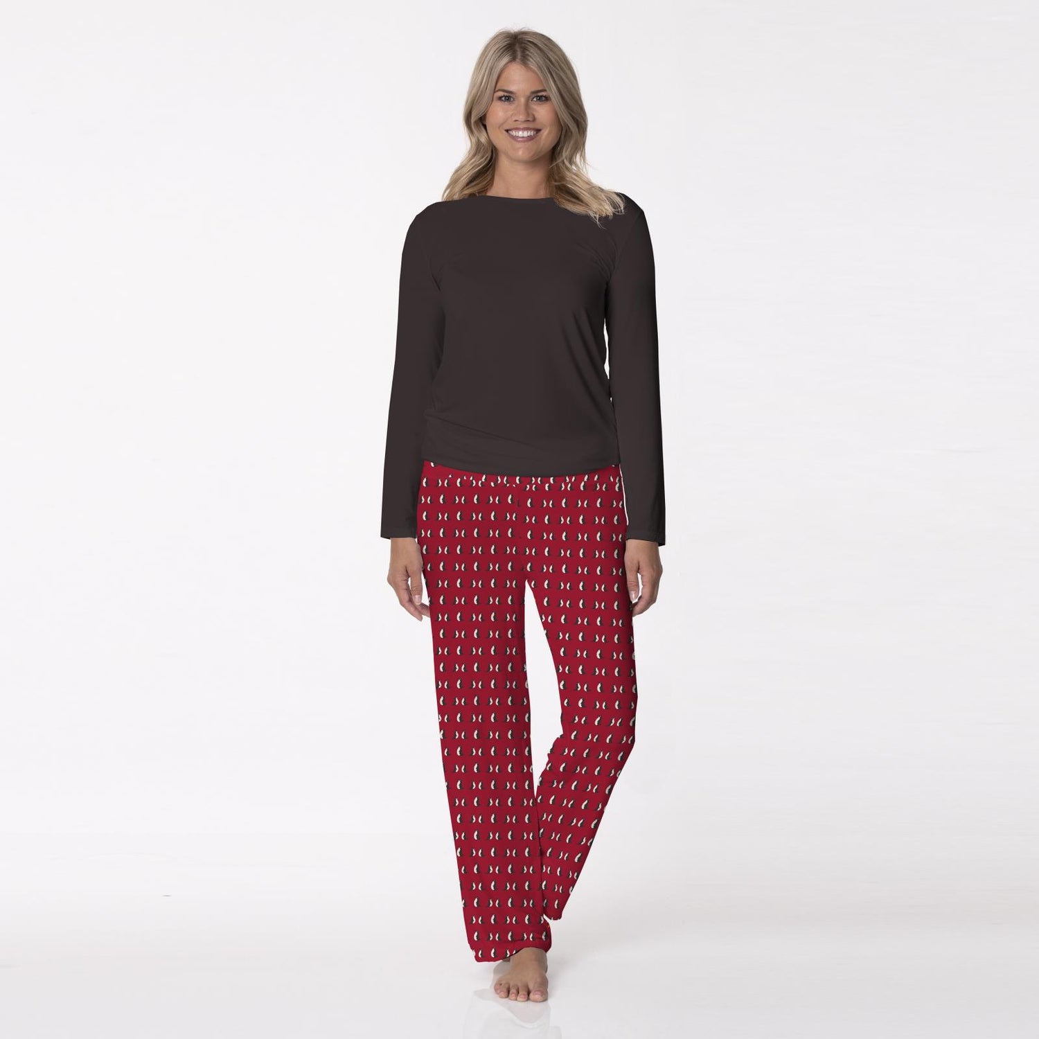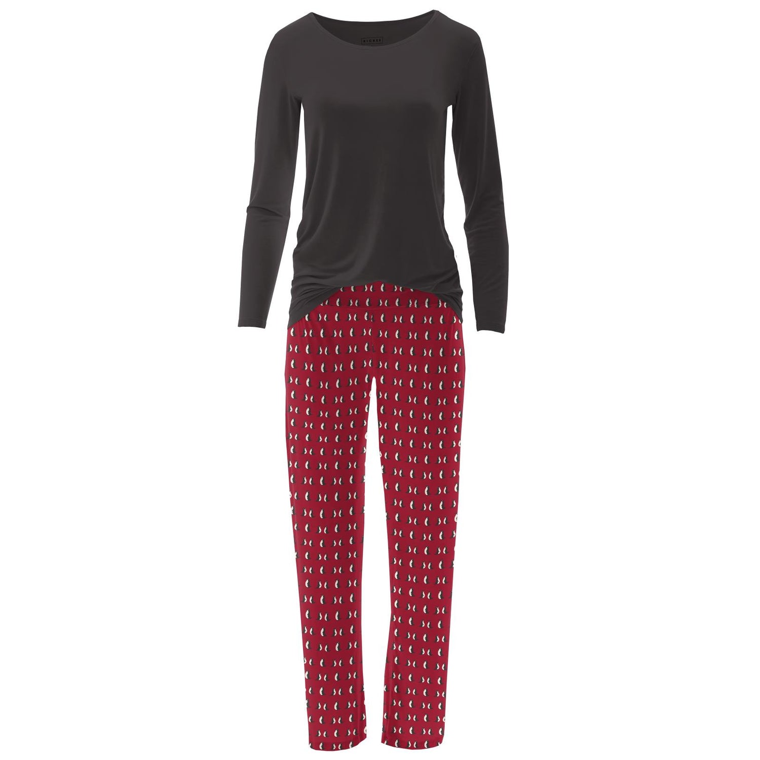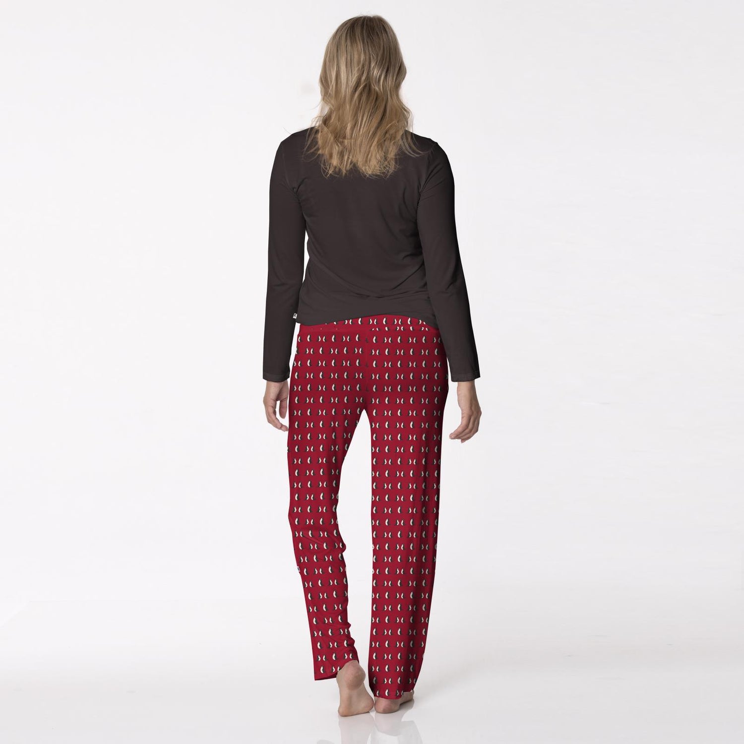 Women's Long Sleeve Relaxed Tee & Pajama Pants Set in Crimson Penguins