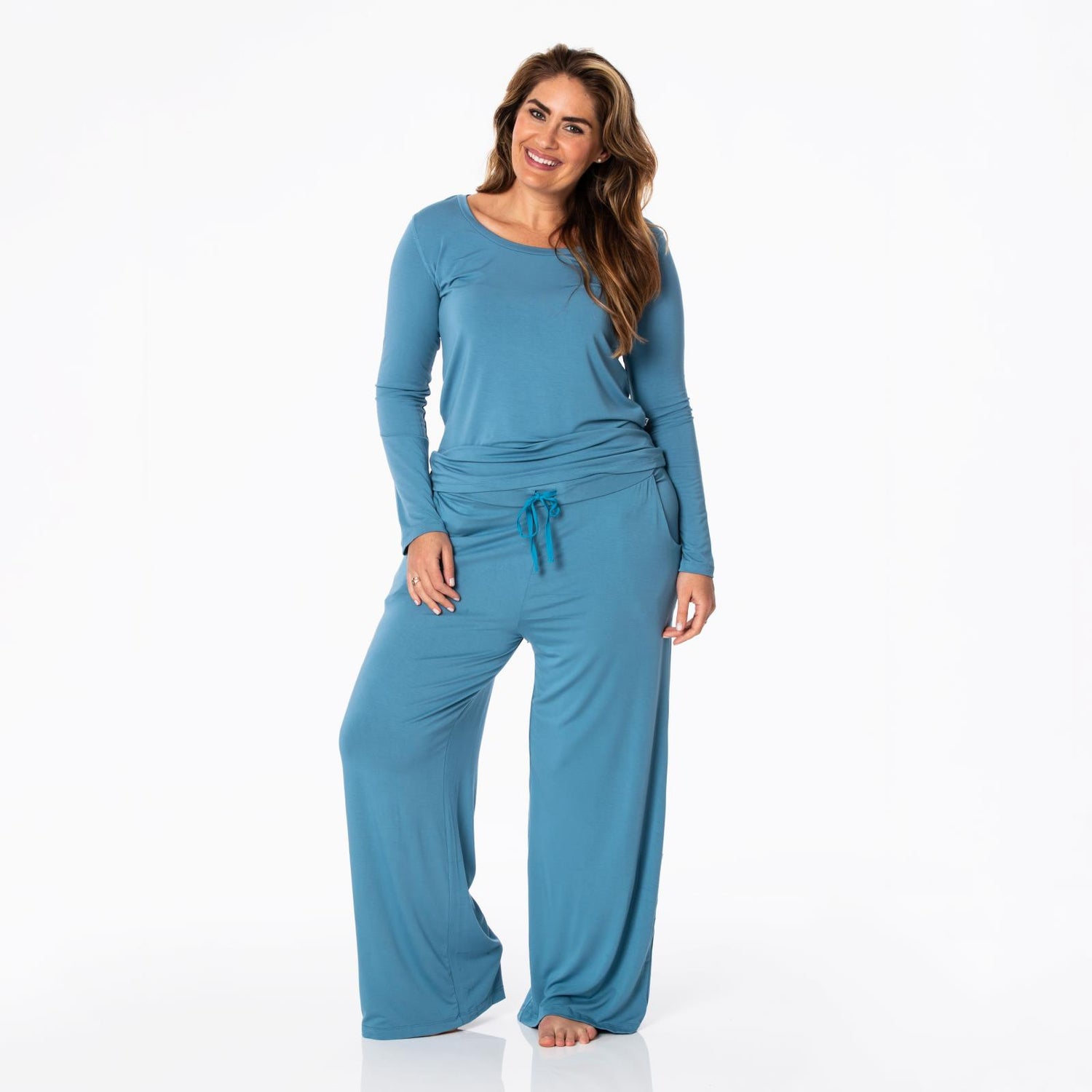 Women's Long Sleeve Scoop Neck Tee in Parisian Blue