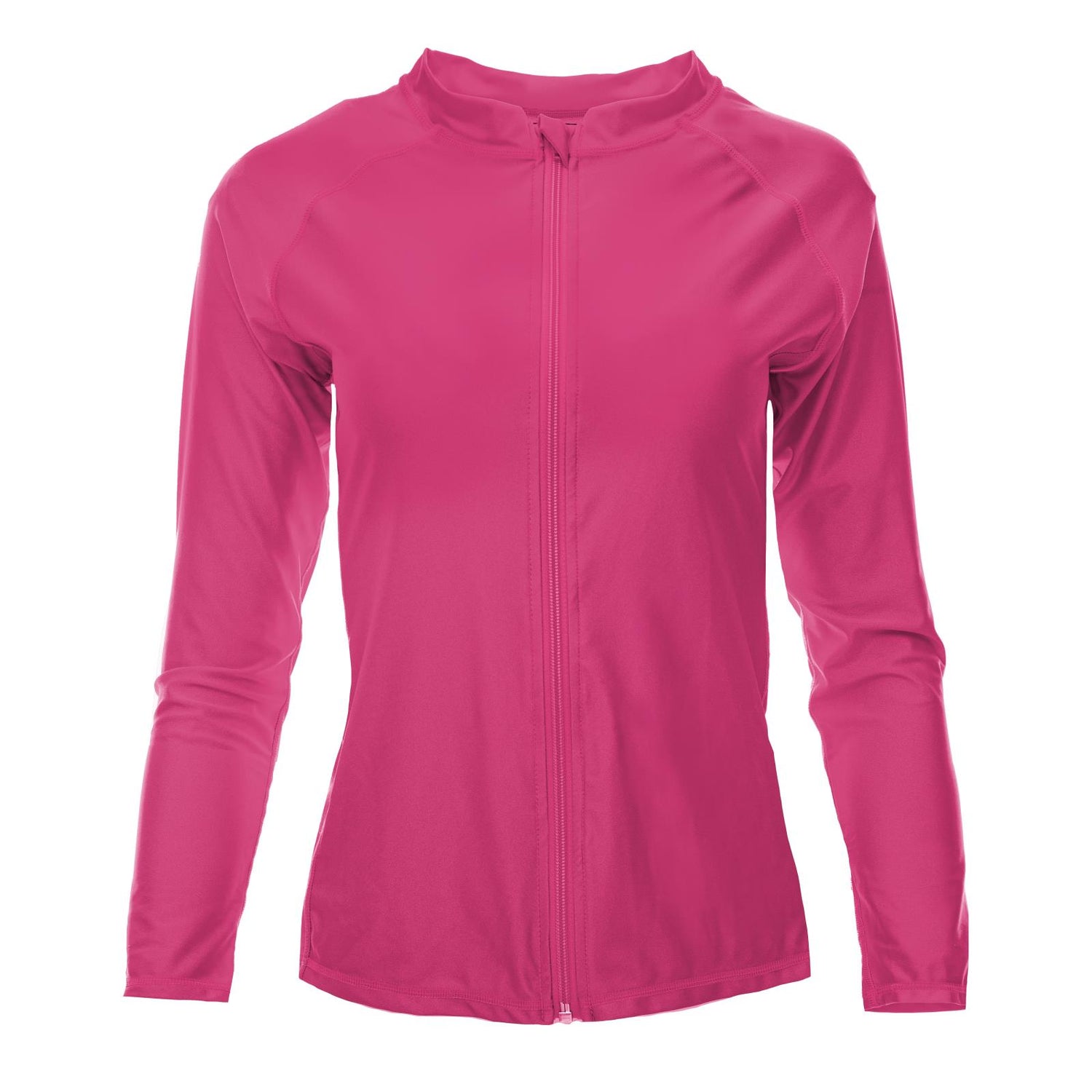 Liven up your swimwear with a bright and cheerful KicKee rash guard. This quick drying and flexible swim top will keep your skin protected while the front zipper makes for easy changes. The perfect choice for any water activity.