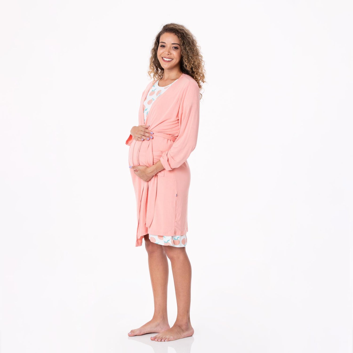 Pregnant or Nursing and love our Solid Basic Robe, but need a little extra room for that baby bump? Well, you are in luck! With our new Mid Length Robe, you can enjoy all of the same delightfully soft and stylish perks of our Basic Robe with all the added benefit of extra fabric and stretchiness for the loose fit during and after your pregnancy! Designed with ease, comfort and convenience in mind, our maternity robe features two front pockets, as well as inside and outside ties to help secure it in place.