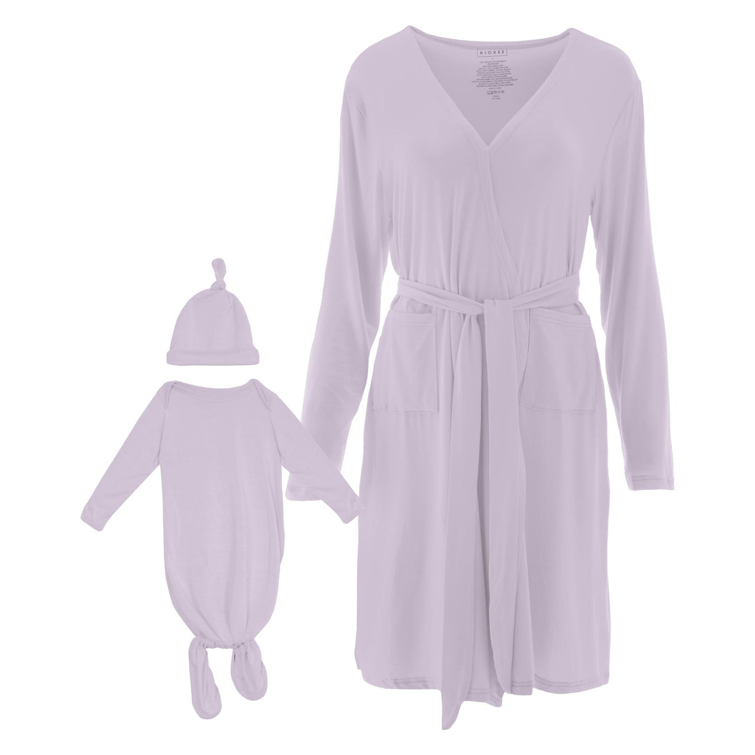 Women's Mid-Length Lounge Robe & Knotted Layette Gown Set in Thistle