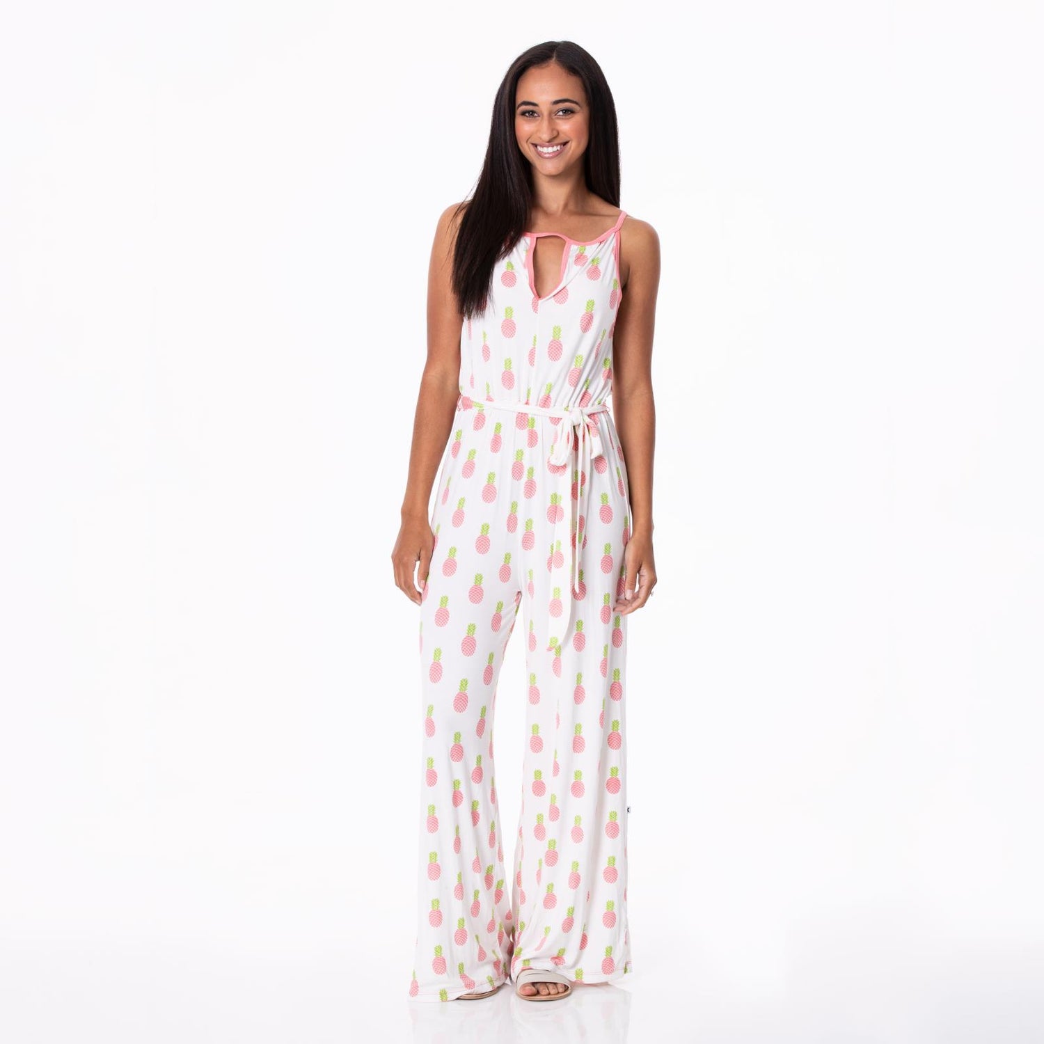 Women's Print Breezy Keyhole Jumpsuit in Strawberry Pineapples