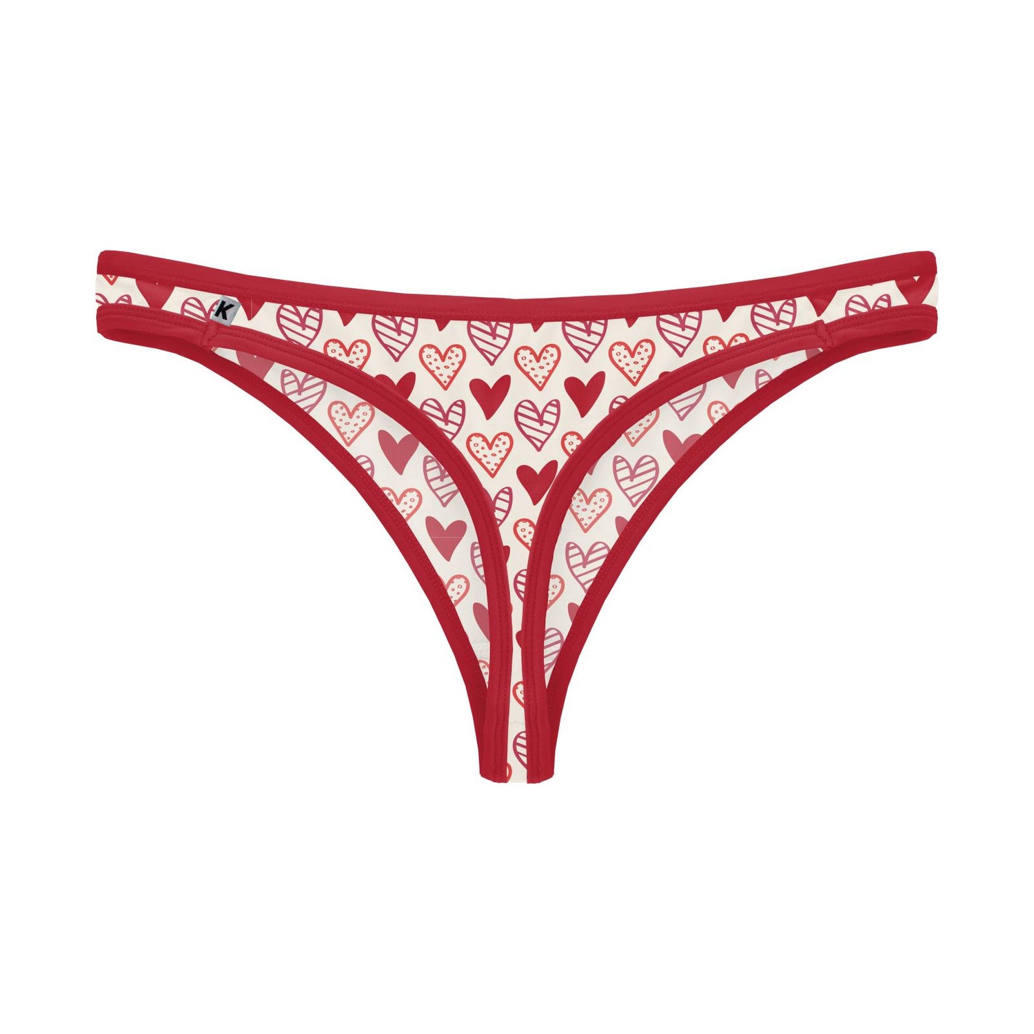 Women's Print Classic Thong Underwear in Natural Heart Doodles