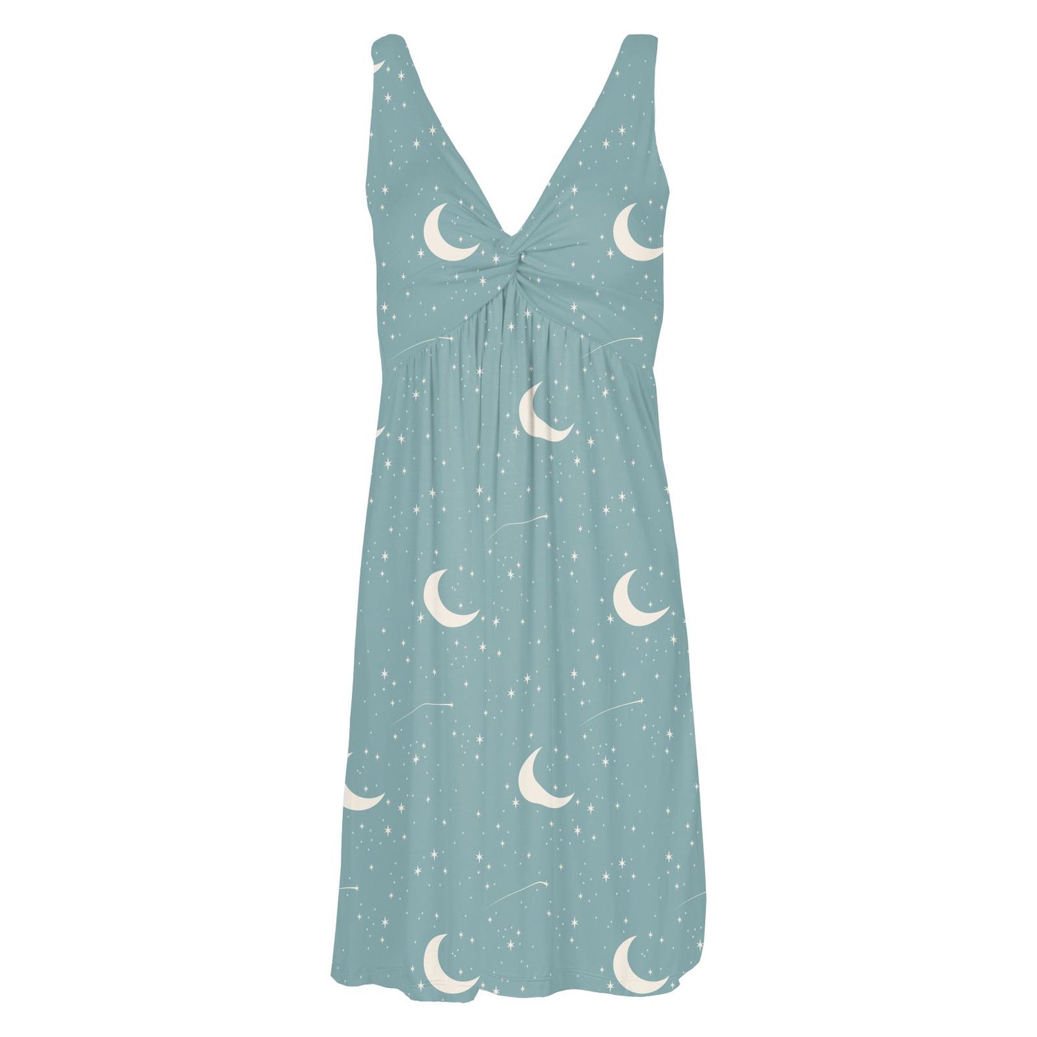 Women's Print Knee-Length Twist Nightgown in Jade Starry Sky & Moon