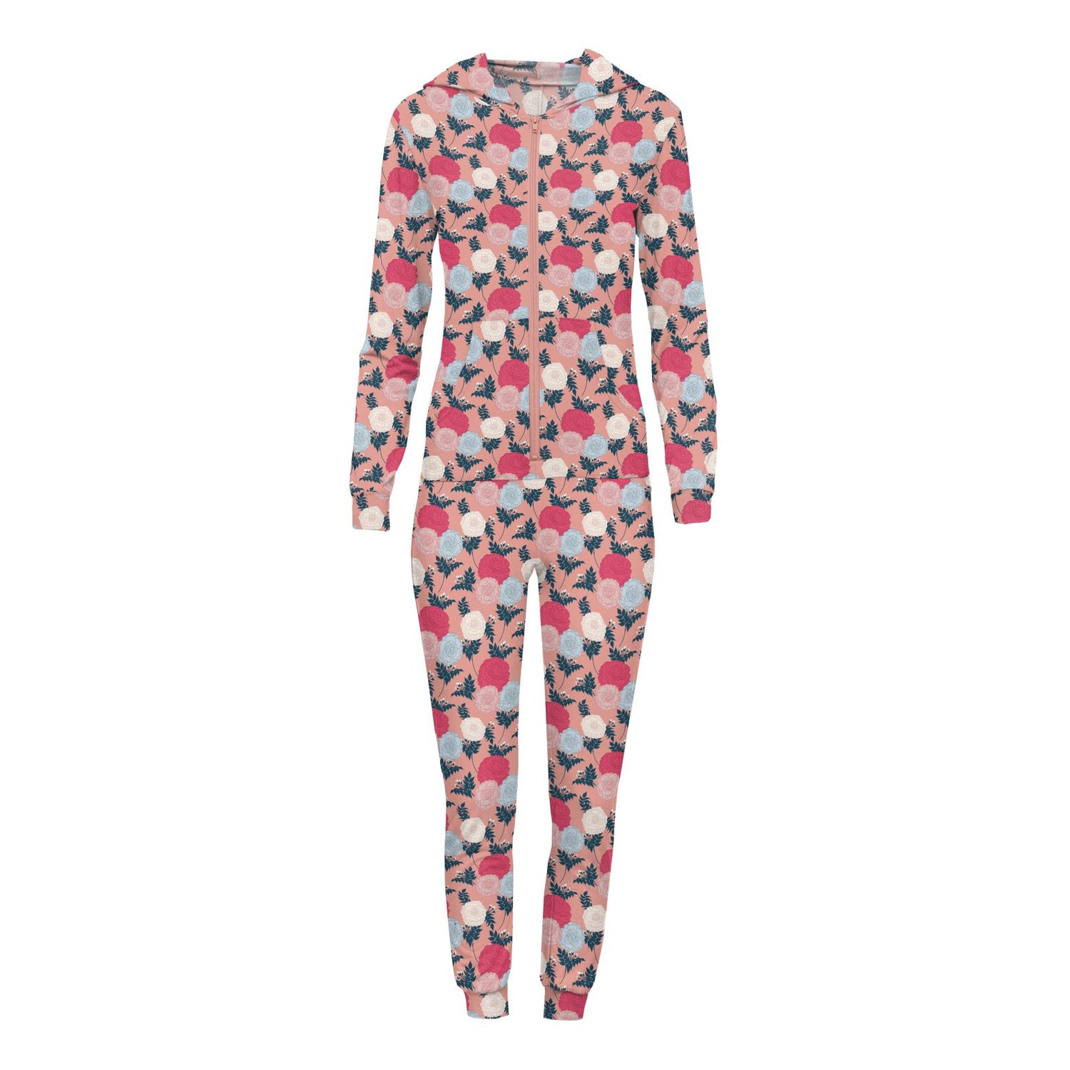 Women's Print Long Sleeve Jumpsuit with Hood in Blush Enchanted Floral