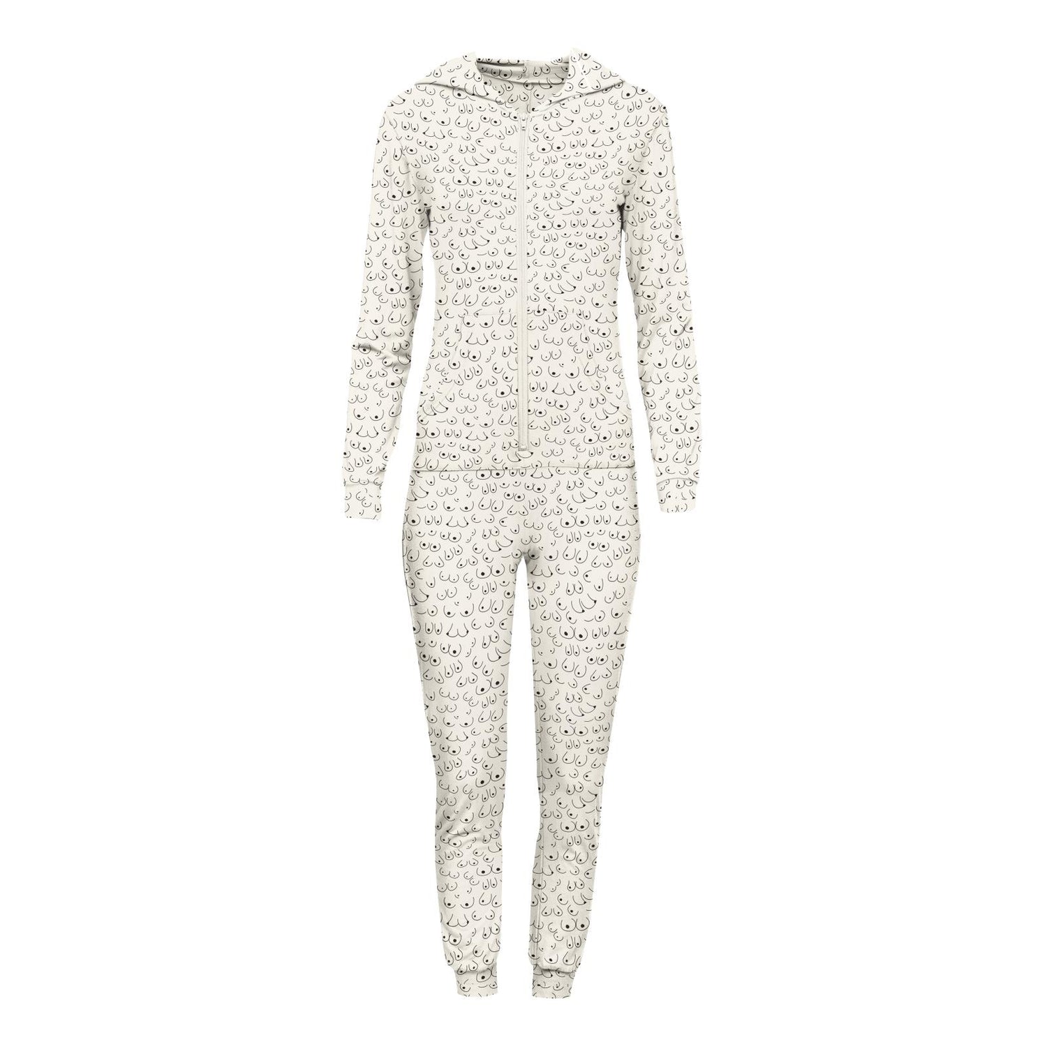 Women's Print Long Sleeve Jumpsuit with Hood in Breast Cancer Awareness