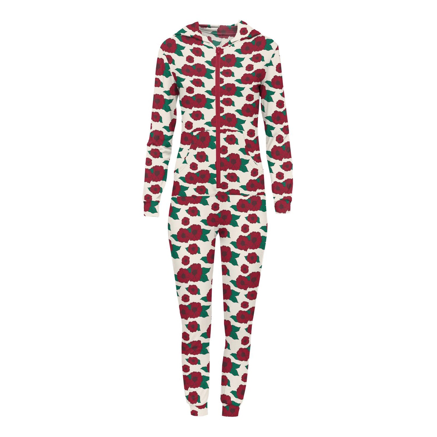 Women's Print Long Sleeve Jumpsuit with Hood in Holiday Poppies