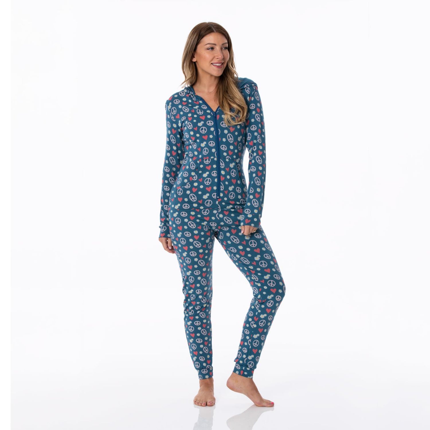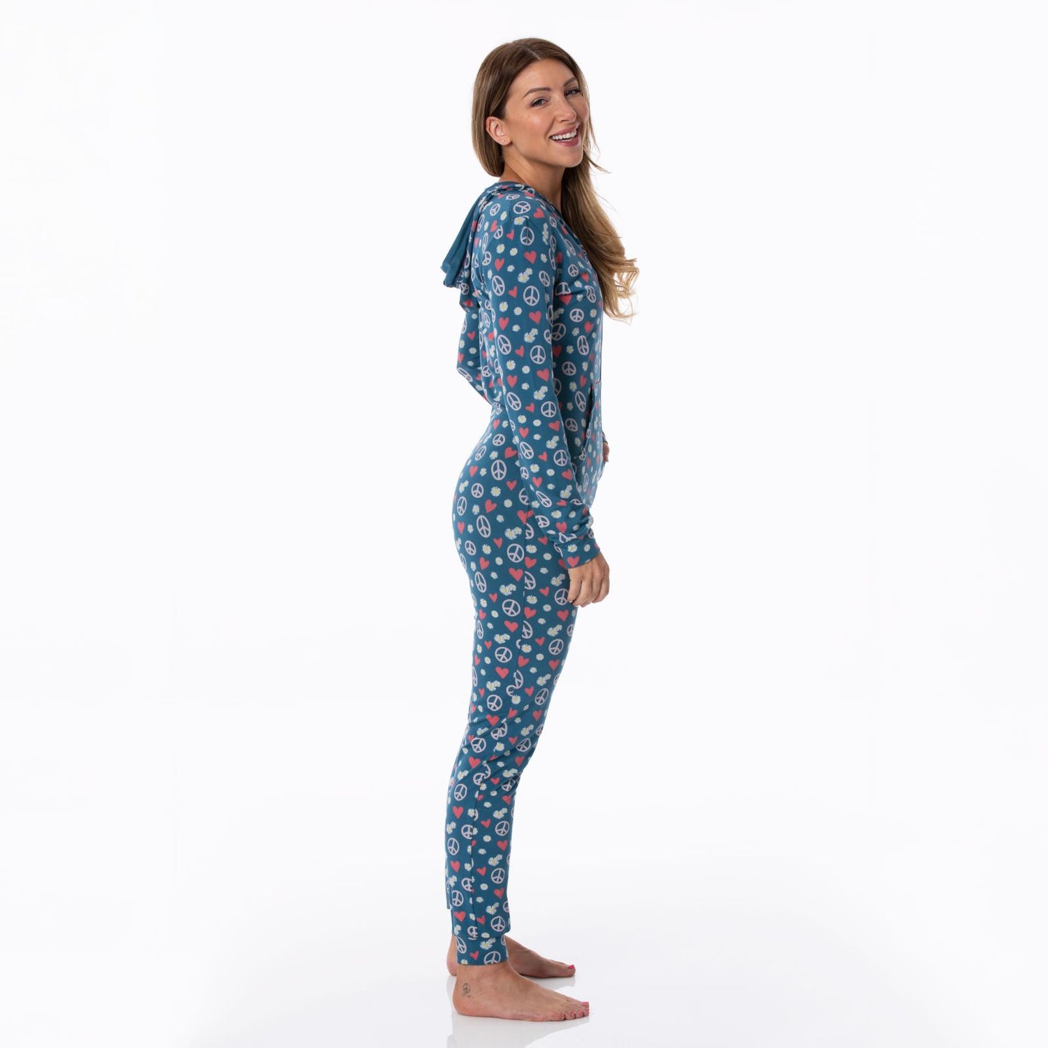 Women's Print Long Sleeve Jumpsuit with Hood in Peace, Love and Happiness