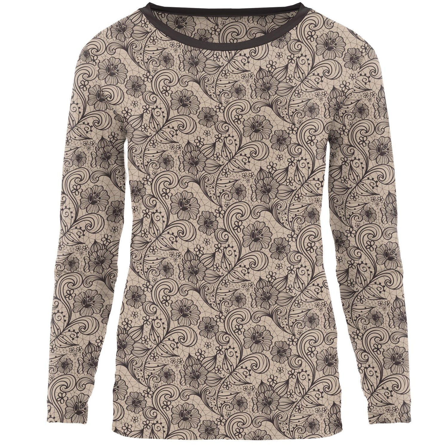 Women's Print Long Sleeve Relaxed Tee in Burlap Lace